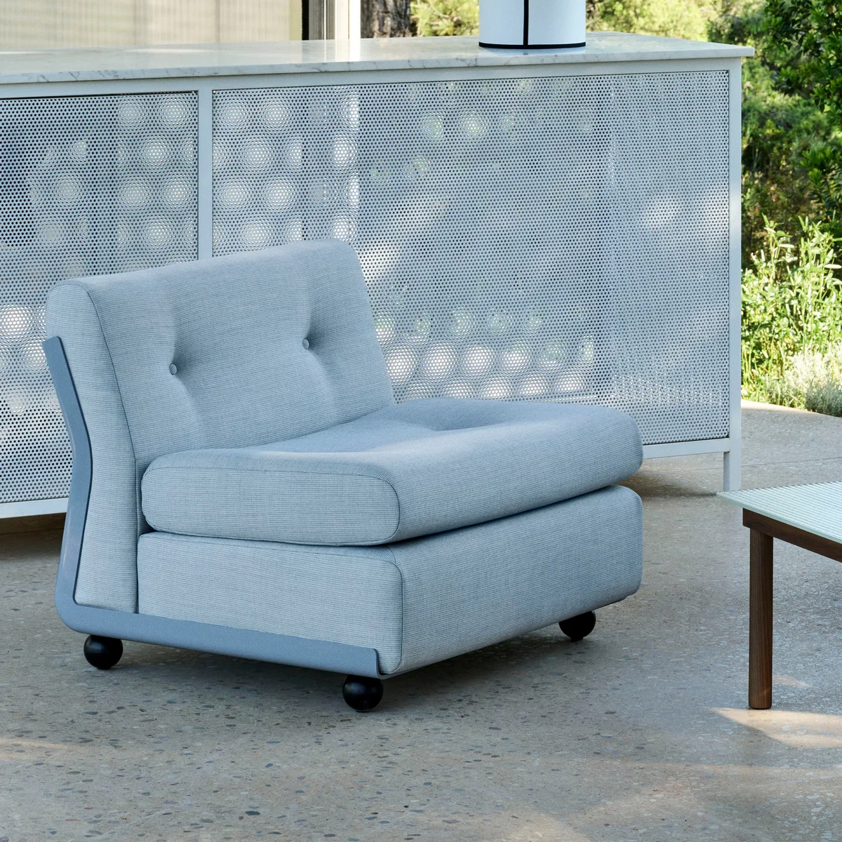 Das Amanta Sofa, 1966 von Mario Bellini entworfen und von HAY neu aufgelegt, vereint ikonisches Mid-Century-Design mit moderner Nachhaltigkeit. Die skulpturale, organische Form und die niedrige Silhouette schaffen einen markanten Blickfang, während das modulare Konzept flexible Nutzungsmöglichkeiten bietet – einzeln oder in Kombination mit weiteren Elementen. Gefertigt aus einer Schale aus recyceltem ABS und Schaumstoffkissen, ist Amanta nicht nur ästhetisch, sondern auch umweltbewusst.