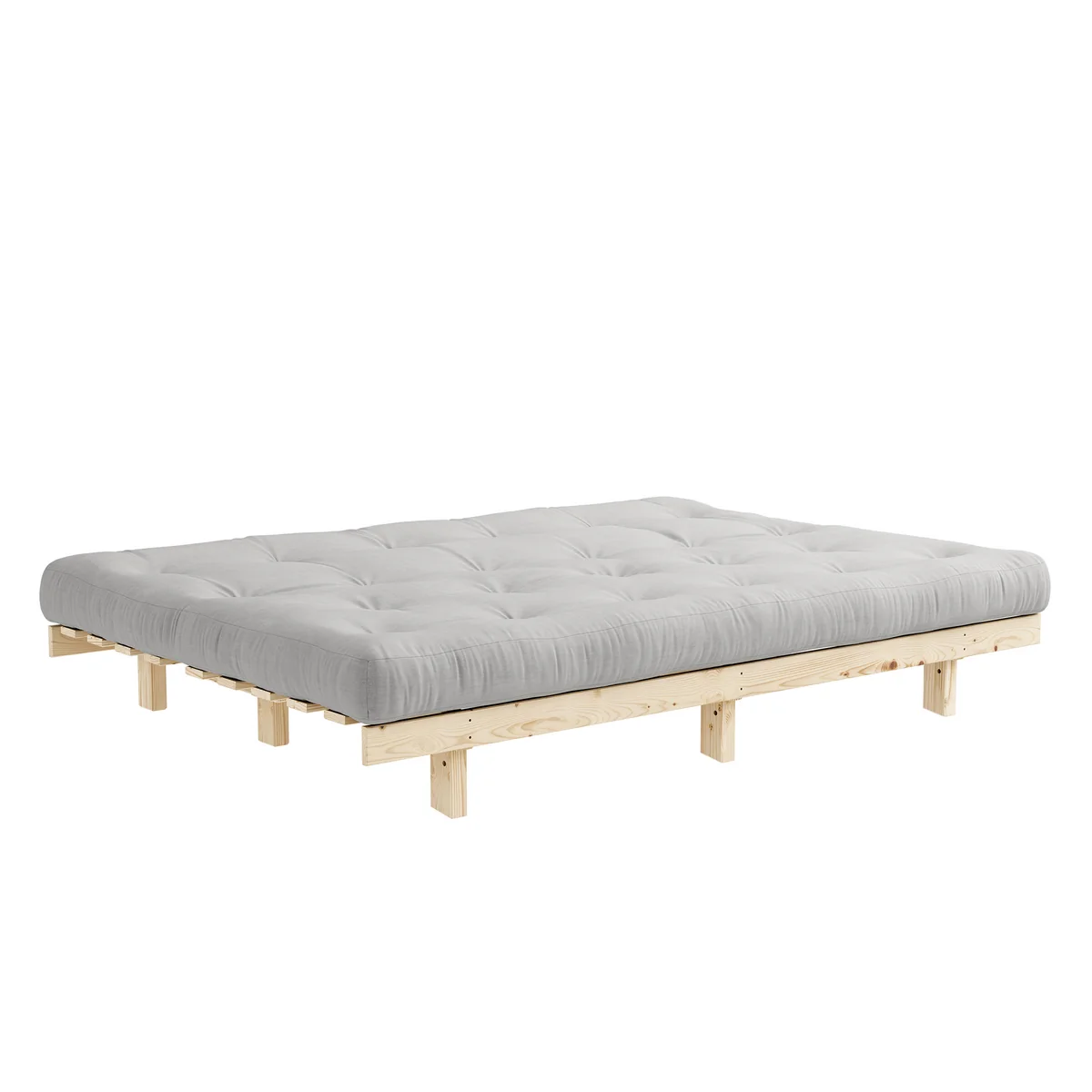 Holzgestell aus Kiefernholz. Matratzenbezug aus 80 % Baumwolle und 20 % Polyester.