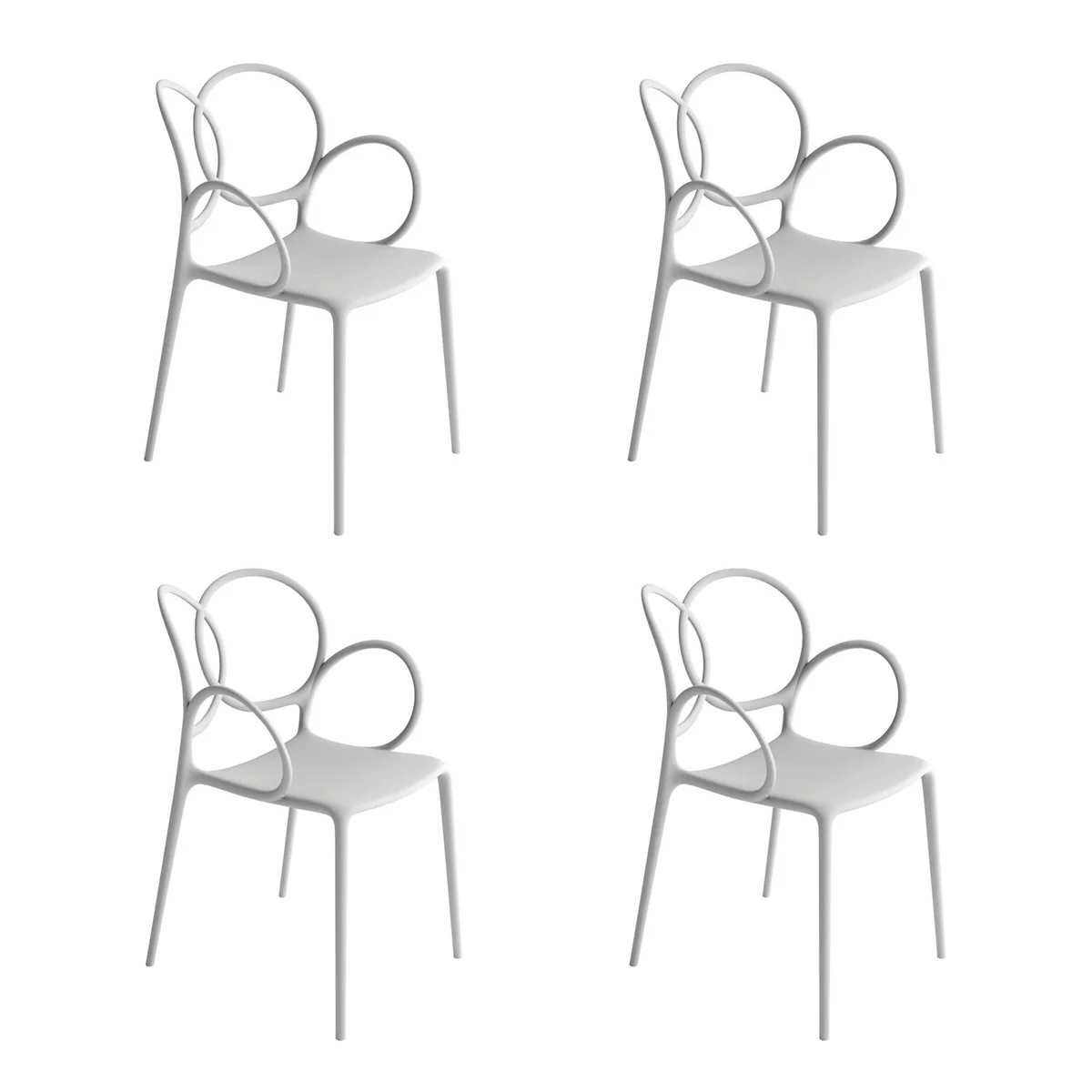 Der Sissi Stuhl ist nicht nur stilvoll, sondern auch funktional: die Stühle sind übereinander stapelbar, hergestellt wird der Sissi Stuhl aus stabilem und widerstandsfähigen Polypropylen. Das eignet ihn nicht nur für den Innenbereich, sondern auch für draußen- auf Terrasse, und Balkon und sogar in Cafés.