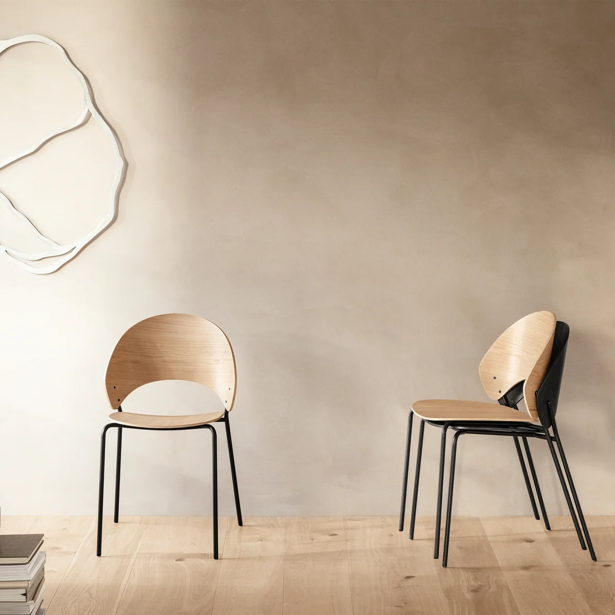 Genau die richtige Balance zwischen Funktionalität, Komfort und Ästhetik erreicht Dosina mit ihrem Design – die fächerförmige Silhouette und der breite, umarmende Rücken sorgen für einen hohen Komfort und die Stapelbarkeit des Stuhls macht ihn platzsparend und vielfältig einsetzbar. Trotz des schlichten Designs und der markanten Rückenlehne wirkt der Stuhl leicht und einladend, sodass er auch in großer Zahl um einen Esstisch herum platziert werden kann.