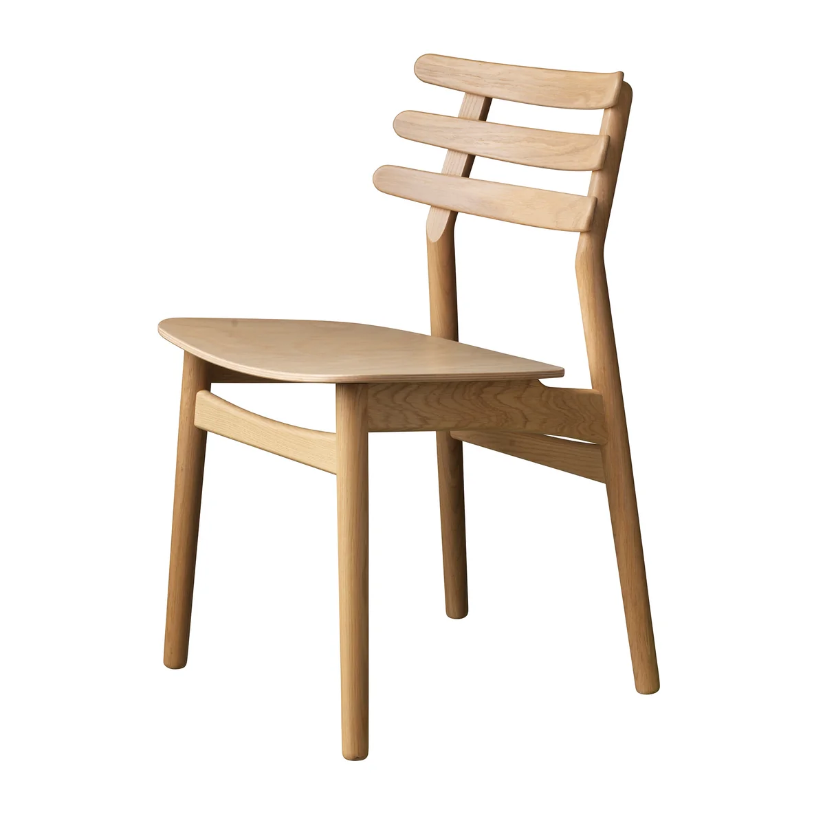 Der J48 Stuhl ist von FDB Møbler ist ein Entwurf des Designers Poul M. Volther und eindeutig als Klassiker aus dem goldenen Zeitalter des dänischen Möbeldesigns zu identifizieren. Dennoch unterscheidet sich der Stuhl von vielen Sitzmöbeln seiner Zeit, die sich durch eine vertikal angeordnete Rückenlehne auszeichnen. Der J48 Stuhl hingegen besitzt horizontale Streben, die aufgrund ihrer Wölbung für Komfort beim Sitzen sorgen.