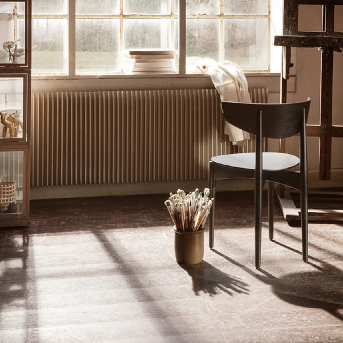 Der Herman Stuhl aus Holz wurde von Ferm Living in Zusammenarbeit mit dem Designstudio Herman Studio entworfen. Er vereint moderne Ästhetik mit einfacher Funktionalität und wird vollständig aus Buchen- oder Eichenholz hergestellt. Die breite, geschwungene Rückenlehne bietet viel Unterstützung für den Rücken und kann auch als Armlehne mit genutzt werden. Der Herman Stuhl ist eine elegante und schöne Sitzgelegenheit, die bequem genug ist, um darin stundenlang sitzen zu können. Dabei besticht er durch ein zeitloses Design, das sich in jede Einrichtung harmonisch einfügt. Herman kann unter anderem als eleganter Esszimmerstuhl um einen Tisch gruppiert werden.