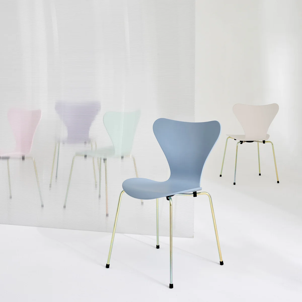 Die Special Edition dieses Serie 7 Stuhles fängt die sanfte Schönheit des dänischen Morgenlichts ein und verleiht Arne Jacobsens ikonischem Serie 7 Stuhl eine neue, poetische Farbpalette. Die fünf zarten Töne (erhältlich in Grün, Beige, Pink, Violett und Blau) spiegeln die Farben eines herbstlichen Morgens wider und werden mit einem Rainbow-Gestell kombiniert. Diese subtilen Nuancen erzeugen eine ruhige, harmonische Atmosphäre und lassen sich sowohl mit der bestehenden Fritz Hansen Farbpalette als auch untereinander mühelos kombinieren.