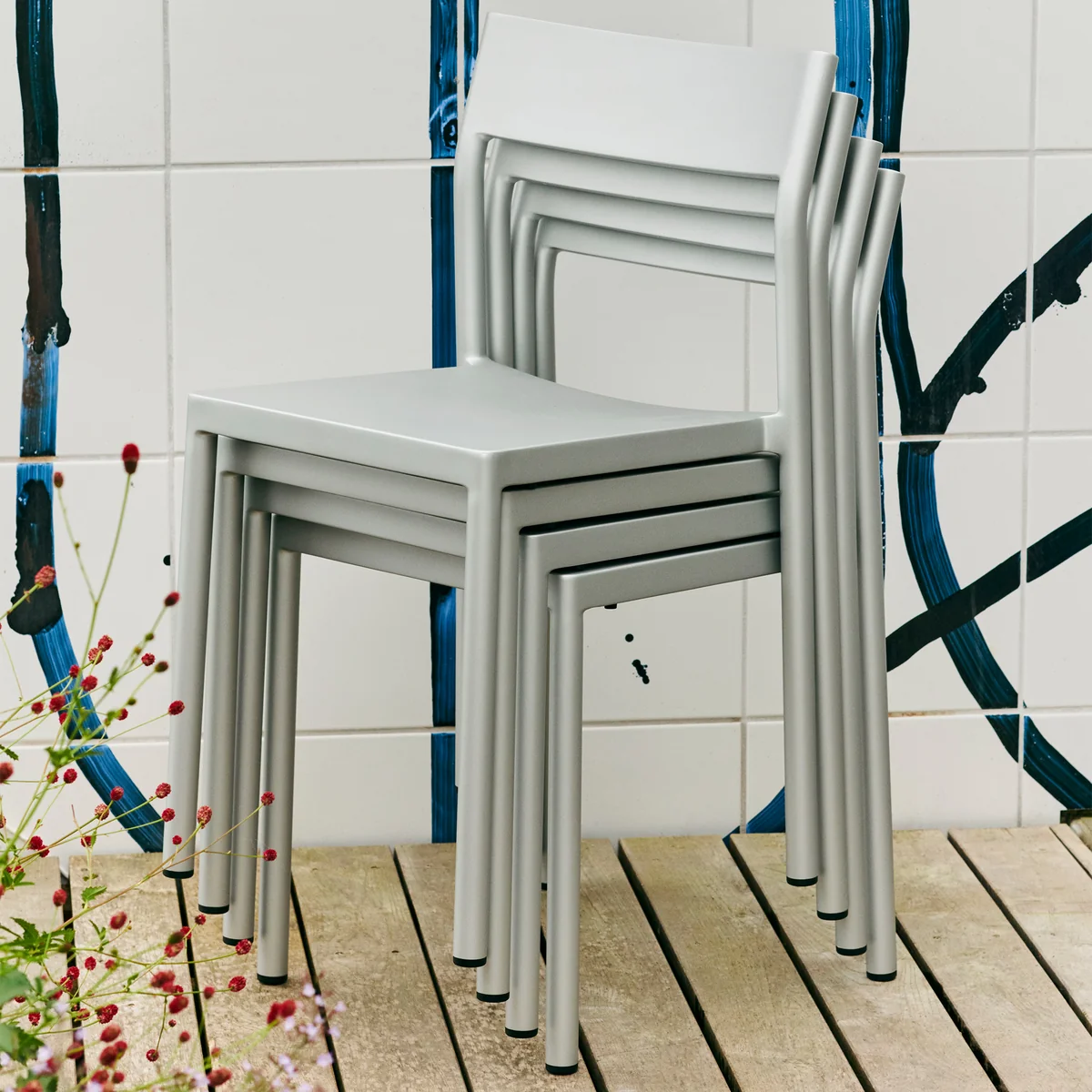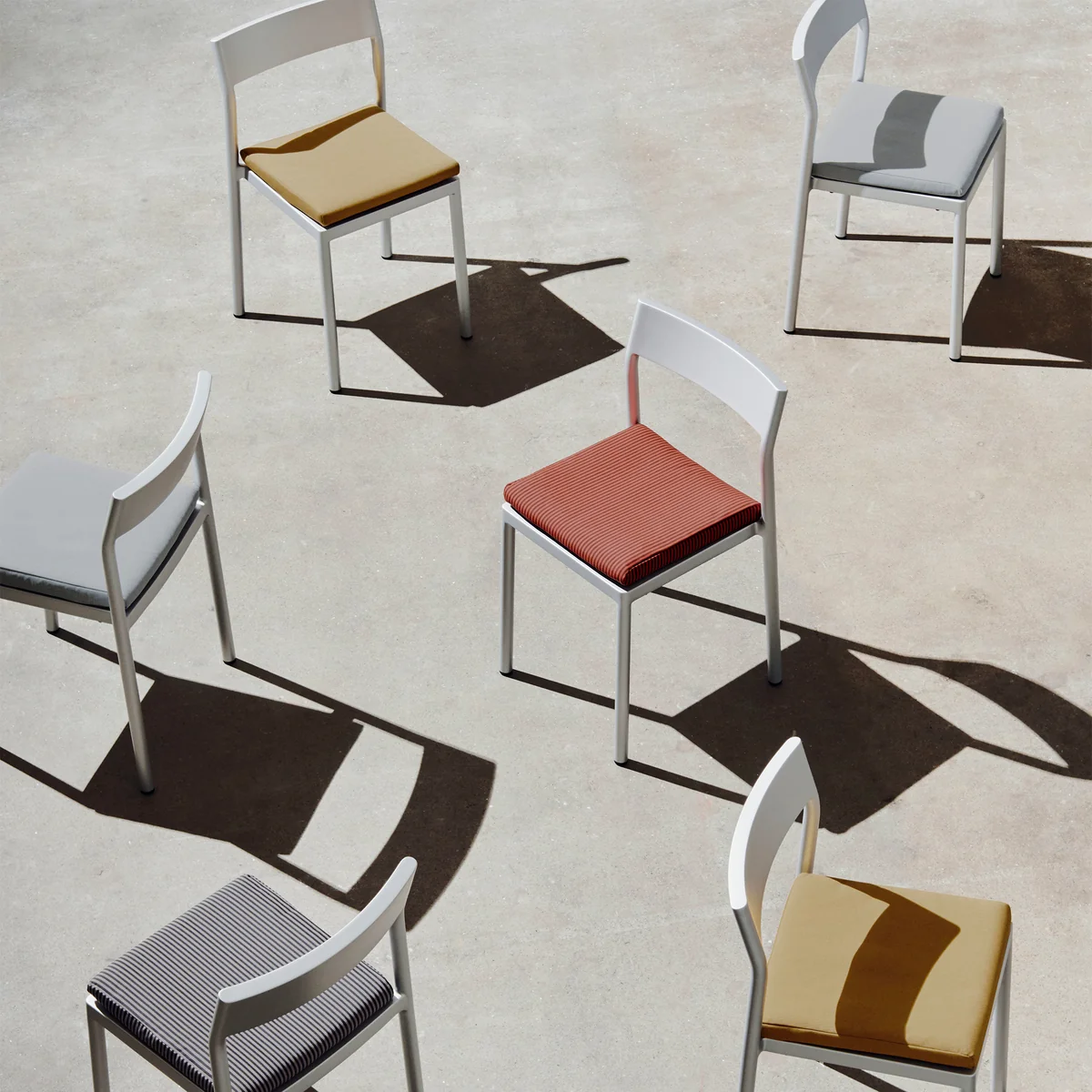 Der aus Aluminium gefertigte und mit Silikon beschichtete Stuhl verbindet nahtlos traditionelle Handwerkskunst mit industriellen Methoden, was zu einer glatten und nahtlosen Oberfläche führt. Mit seinem geringen Gewicht und seiner Stapelbarkeit vereint der Type Chair Funktionalität, Schlichtheit und gleichbleibende Qualität und lässt sich mühelos an die verschiedensten Innen- und Außenbereiche anpassen.