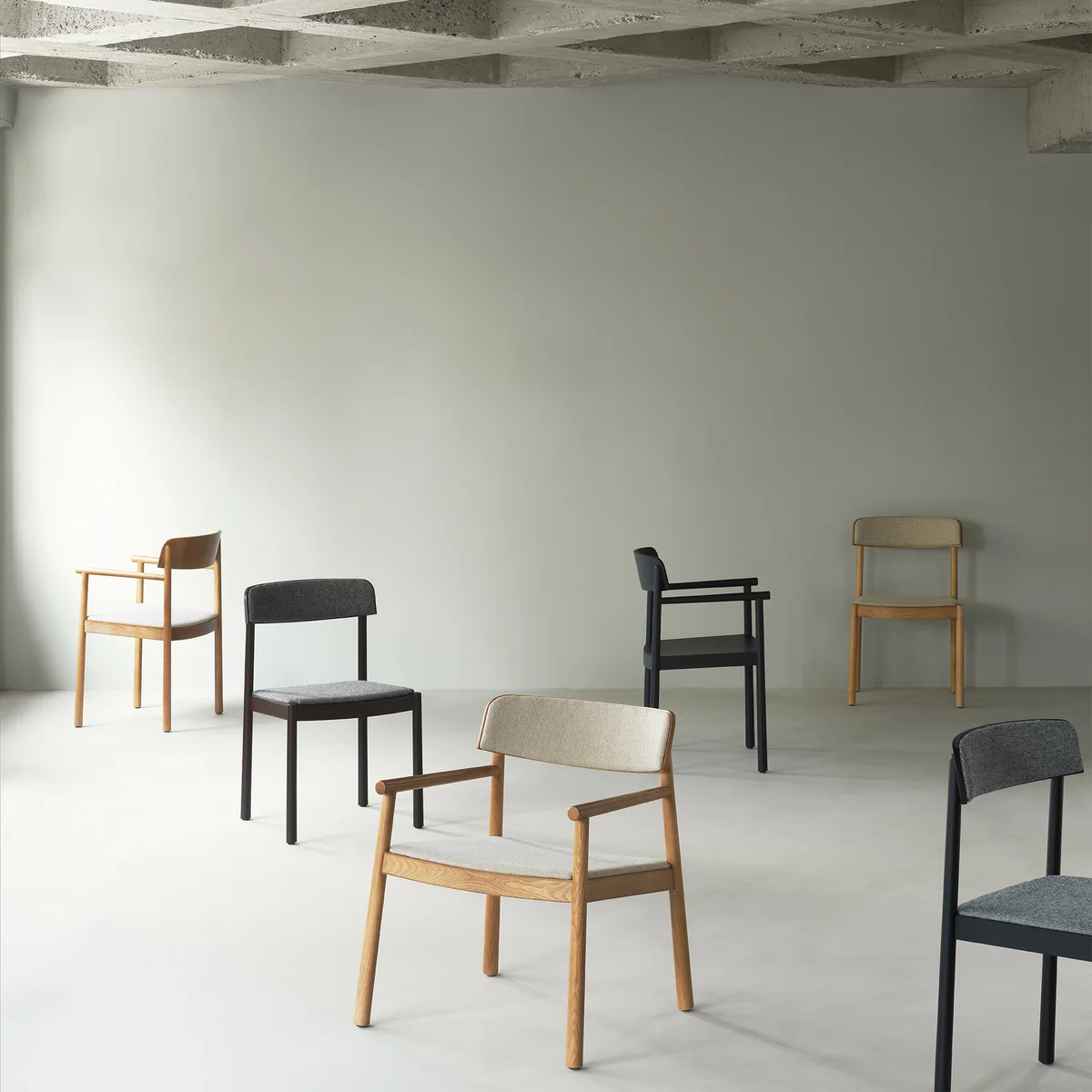 Die Timb Collection von Normann Copenhagen, entworfen von Simon Legald, verkörpert die Essenz eines klassischen Holzstuhls in reduzierter, funktionaler Form. Mit der Einführung einer neuen braunen Farbvariante sowie vollgepolsterten Textilausführungen wird die Kollektion um warme, taktile Nuancen erweitert.