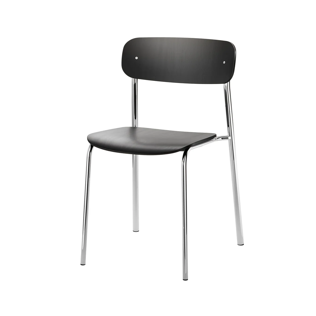 Der S 243 Stuhl kombiniert ein Stahlrohrgestell mit Formholz für Sitz und Rücken und zeigt eine minimalistische, dennoch formschöne Ästhetik. Entworfen von Frank Rettenbacher, zeichnet sich der Stuhl durch seine leichte, stapelbare Konstruktion aus, die optimal auf moderne Lebens- und Arbeitswelten abgestimmt ist. Die klare Bauweise unterscheidet zwischen den hinteren, stärkeren Beinen mit einem Durchmesser von 25 mm und den vorderen, schlankeren Beinen mit 18 mm, die sichtbar von der Vorderseite bis zur Verbindung mit den Hinterbeinen verlaufen und dem Stuhl eine besondere Leichtigkeit verleihen.