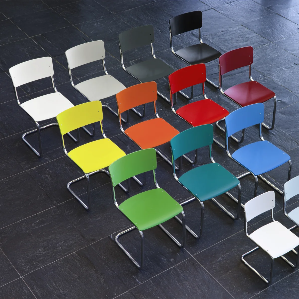 Der Freischwinger ist auch mit passenden Armlehnen unter dem Namen S 43 F in verschiedenen Farben erhältlich.