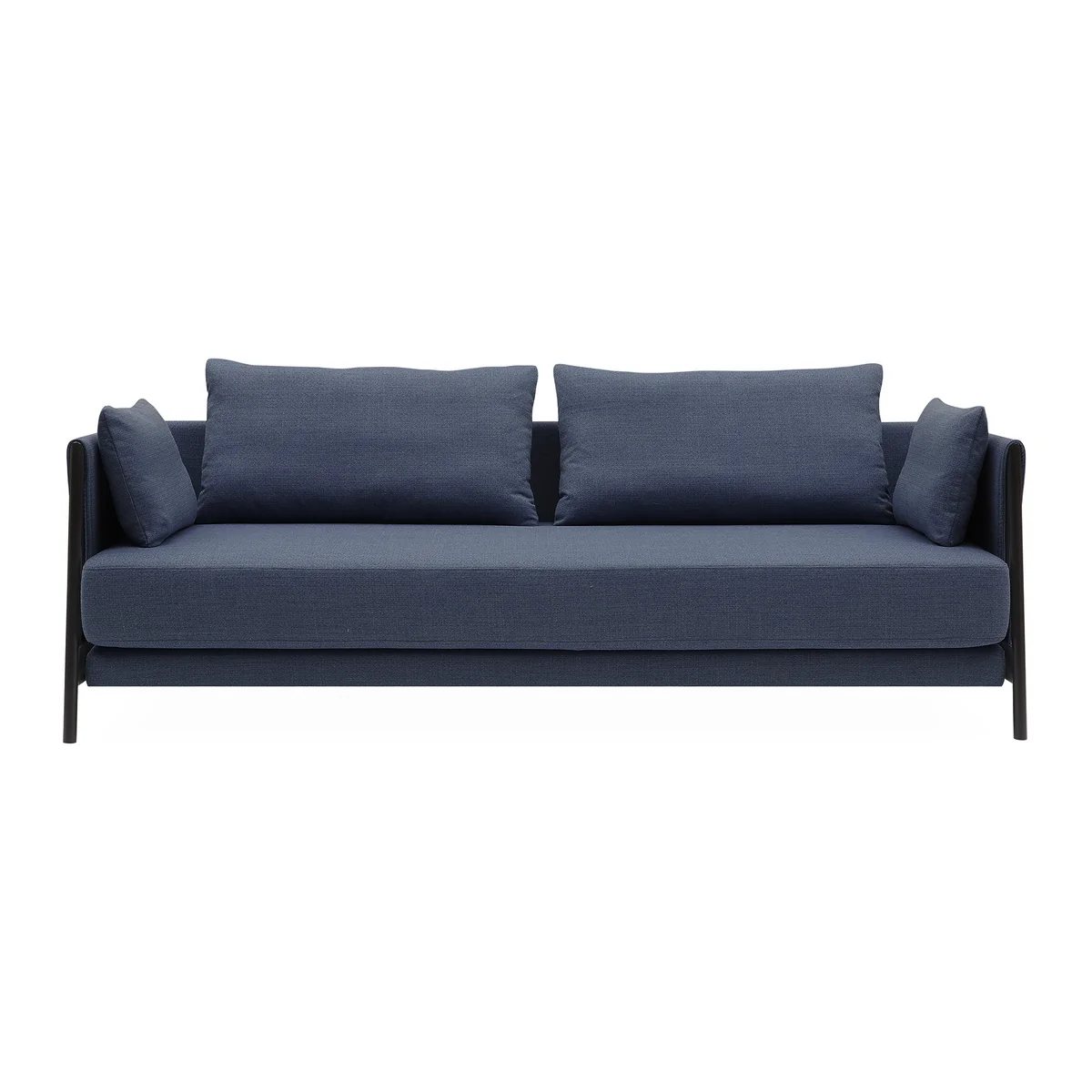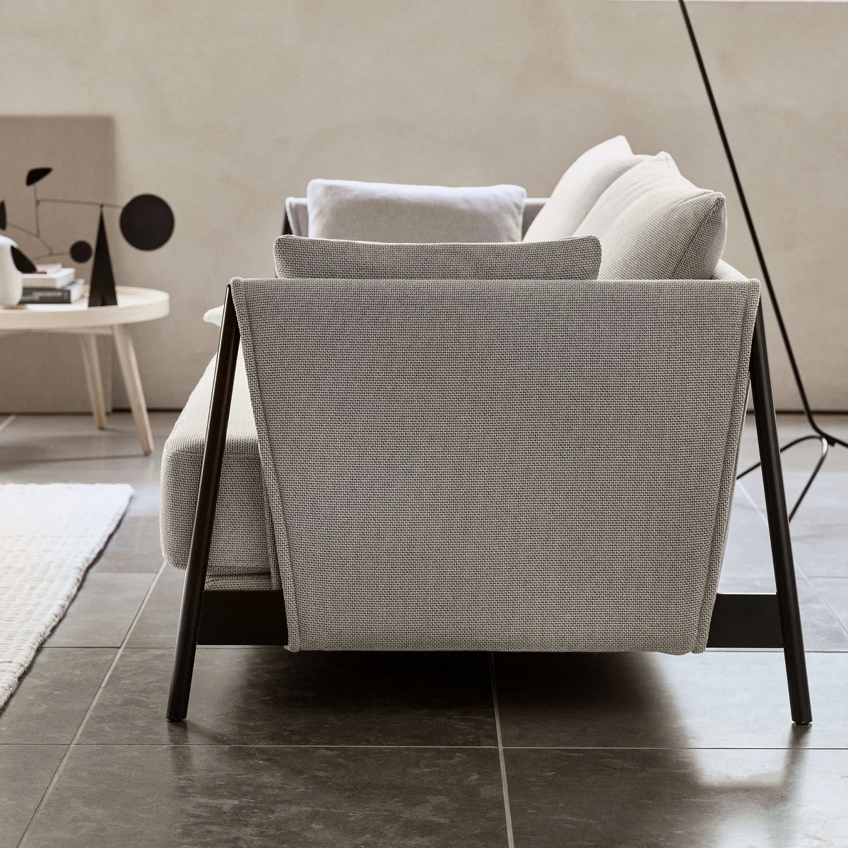 Das Gestell des Schlafsofas wird aus Stahl hergestellt. Bezüge in verschiedenen Stoffen und Farben machen das Sofa flexibel einsetzbar. Individuell gestaltet passt es sich jedem Geschmack und jedem Raum optimal an.