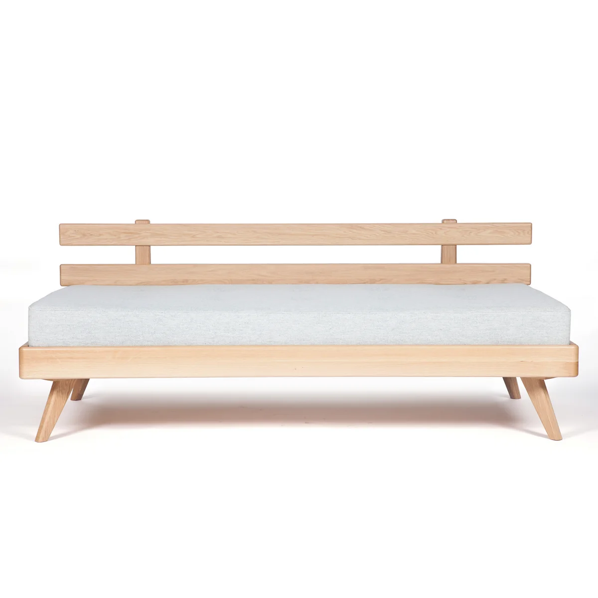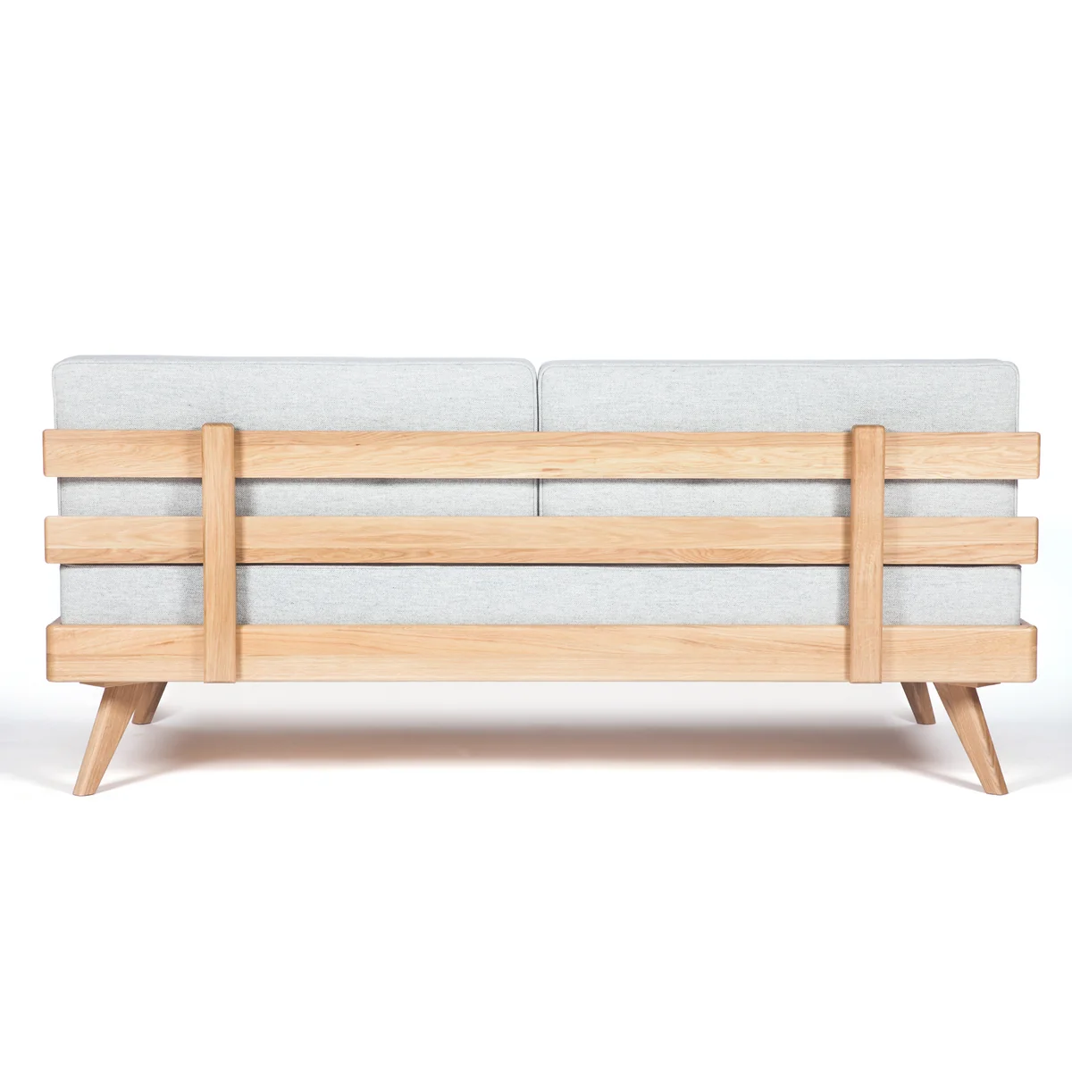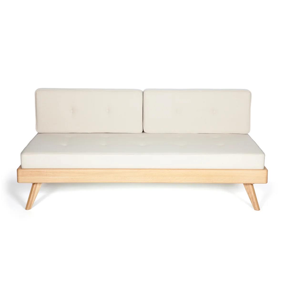 Mit der Nightcouch präsentiert „The Hansen Family“ ein weiteres Familienmitglied aus der Feder von Designerin Gesa Hansen. Ebenso wie die anderen Möbel aus der Remix Kollektion besteht das Gestell der Nightcouch aus solidem Eichenholz. Die Optik und der Komfort der Couch erinnern an ein klassisches skandinavisches Sofa, das sich im Handumdrehen in ein bequemes Doppelbett verwandeln lässt.
