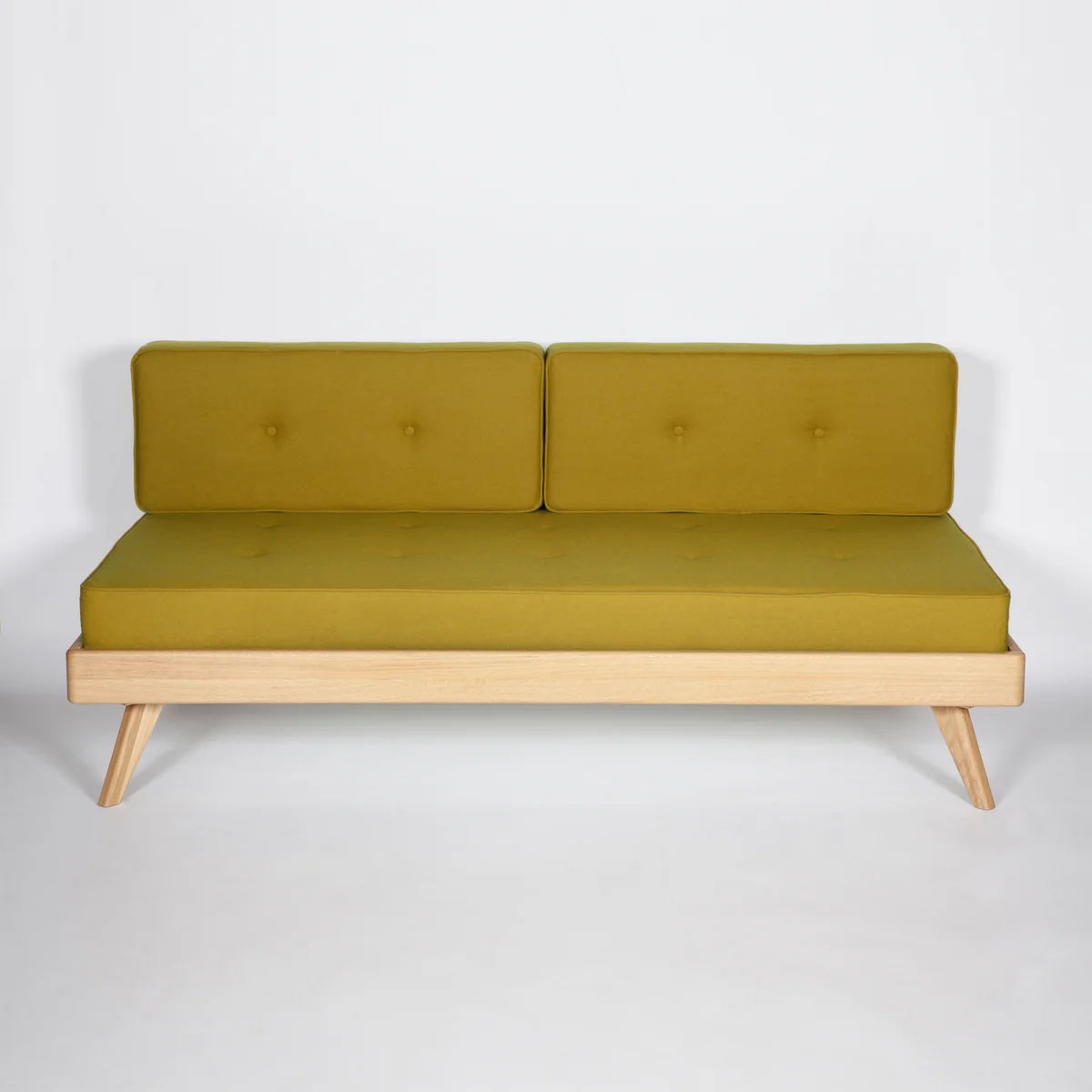 Mit der Nightcouch präsentiert „The Hansen Family“ ein weiteres Familienmitglied aus der Feder von Designerin Gesa Hansen. Ebenso wie die anderen Möbel aus der Remix Kollektion besteht das Gestell der Nightcouch aus solidem Eichenholz. Die Optik und der Komfort der Couch erinnern an ein klassisches skandinavisches Sofa, das sich im Handumdrehen in ein bequemes Doppelbett verwandeln lässt.