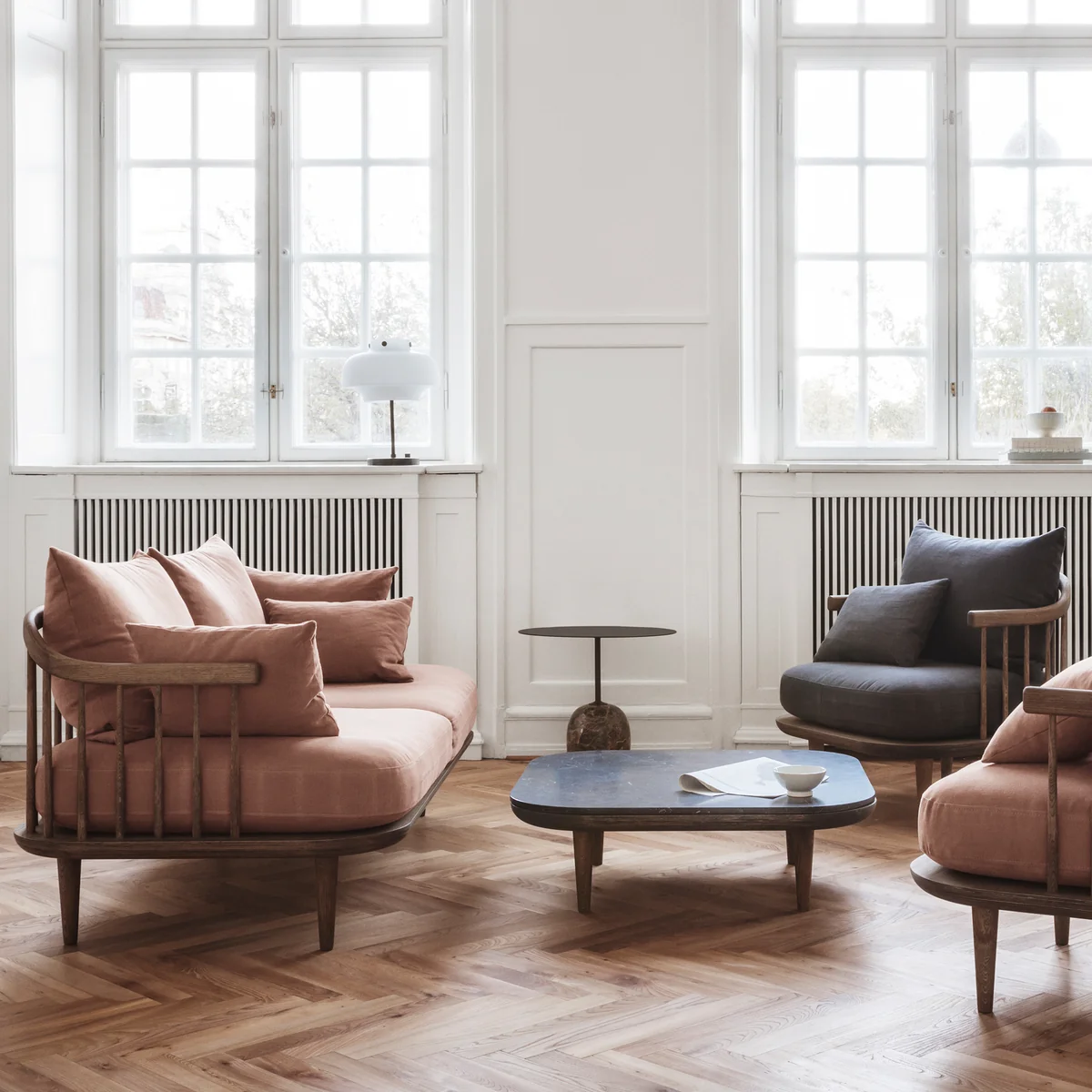 Signe Bindslev Henriksen und Peter Bundgaard Rützou, die Gründer vom Designstudio Space Copenhagen, wollten mit dem FLY Sofa ein Möbelstück schaffen, das skulpturale Elemente und außerordentlichen Komfort miteinander verbindet. Genau das ist ihnen gelungen: Für &Tradition gestaltete das dänische Designteam ein Sofa mit großzügigen Proportionen, das zum enspannten Verweilen einlädt und dabei durch seine hervorstechende Optik überzeugt.