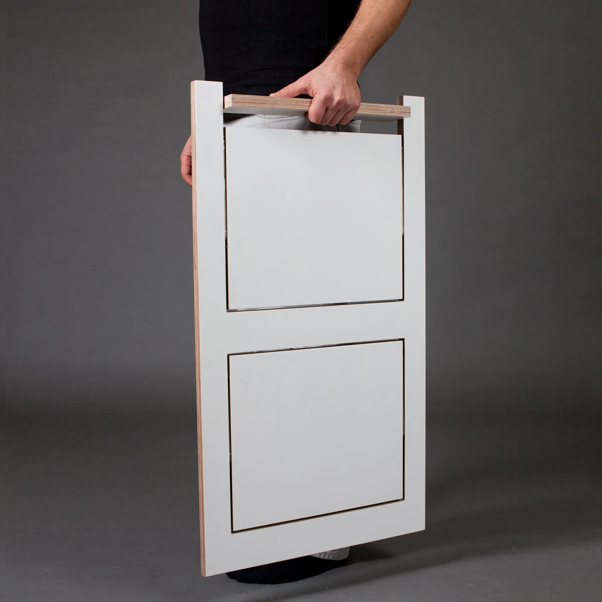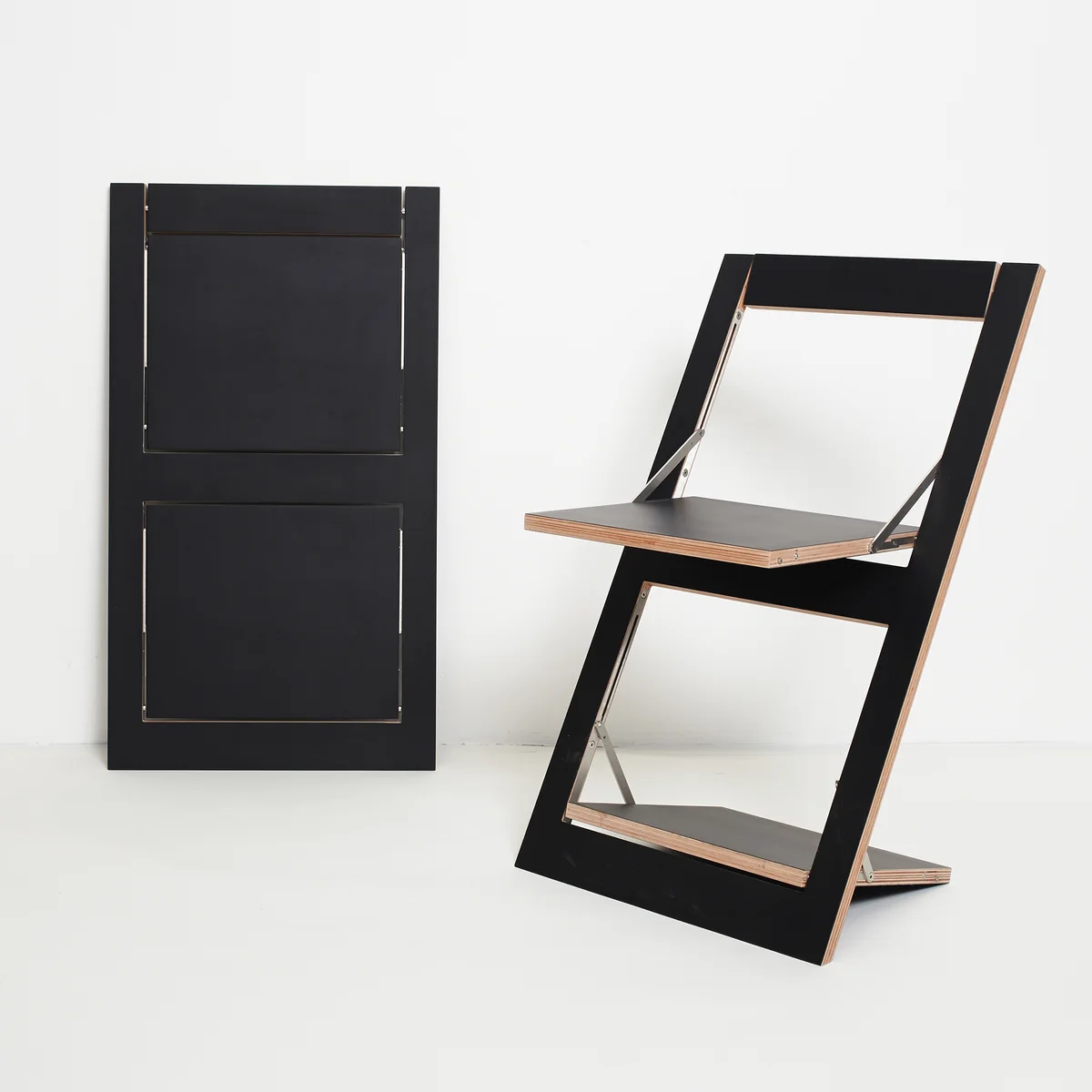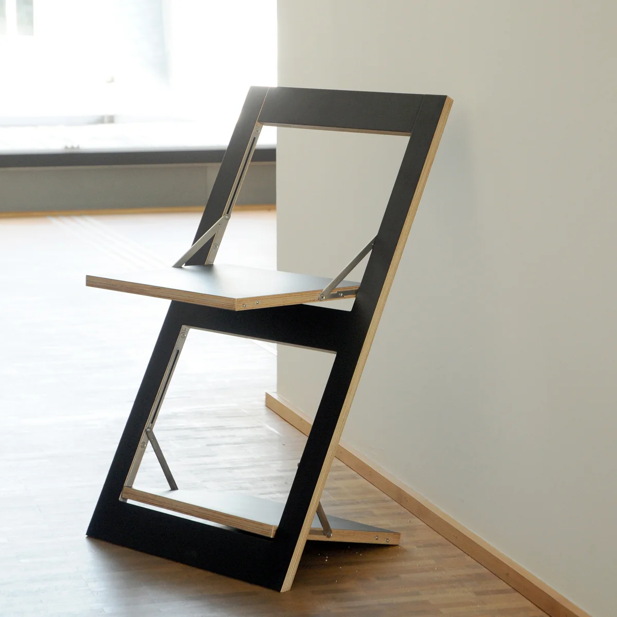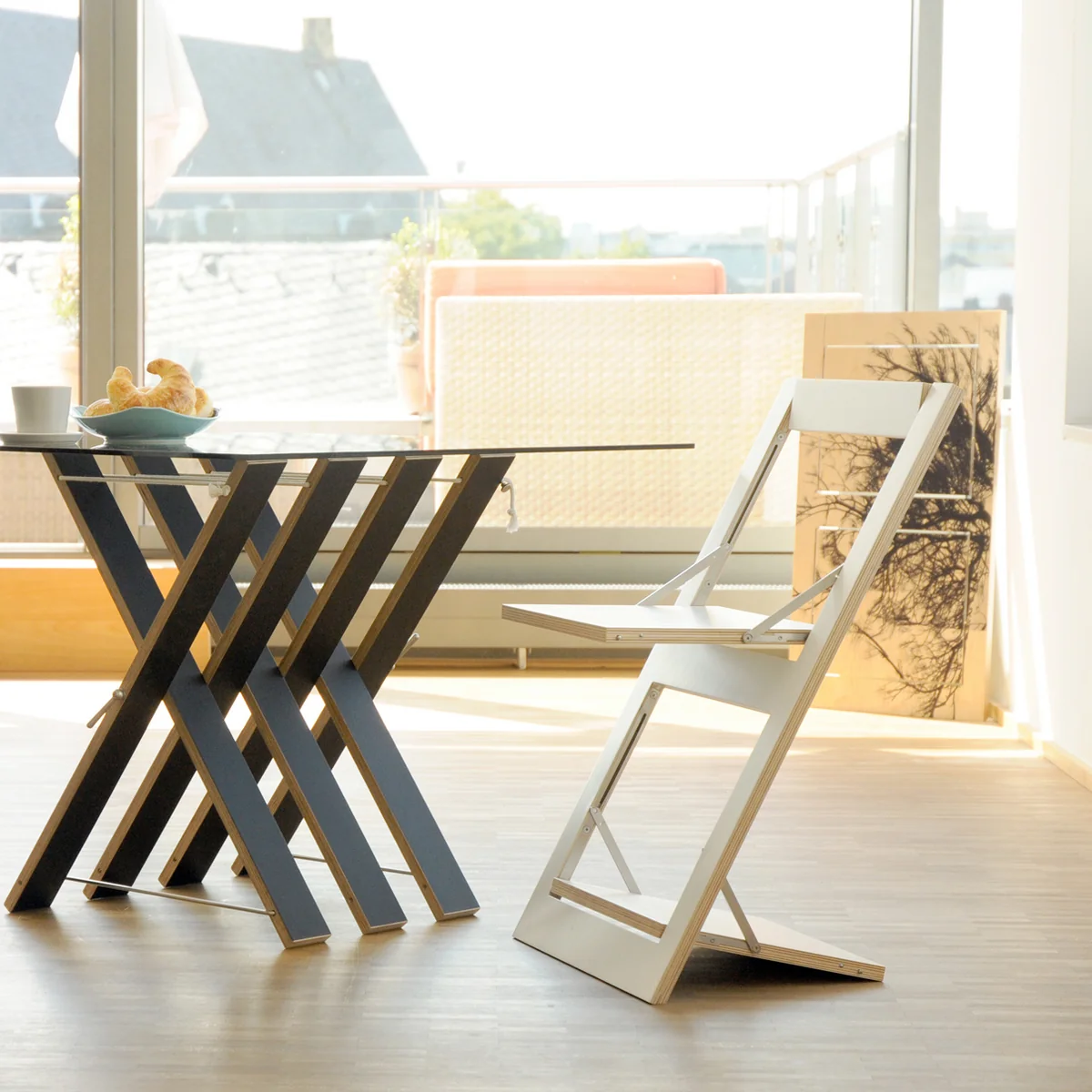 Der Fläpps Klappstuhl von Ambivalenz ist ein absolutes Unikat unter den platzsparenden Sitzmöglichkeiten und gewöhnlichen Klappstühlen. Die meisten Klappstühle sind zwar funktional und praktisch, verschwinden nach Gebrauch aber lieber in der Abstellkammer. Der Fläpps Klappstuhl darf bleiben. Denn er überzeugt nicht nur durch seine praktischen Vorzüge, sondern auch durch sein zeitlos modernes Aussehen. Wird einmal mehr Platz benötigt, kann der Stuhl extrem flach zusammengeklappt werden und hat dann eine Tiefe von nur 2 cm.