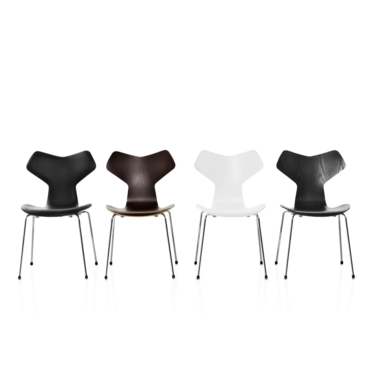 Ursprünglich wurde der Grand-Prix-Stuhl mit einem Holz- und Stahlgestell angeboten. Heute ist er standardmäßig mit einem verchromten Stahlgestell erhältlich und ein idealer Mehrzweckstuhl für Kantinen, Konferenz- und Büroräume und im Wohnbereiche.