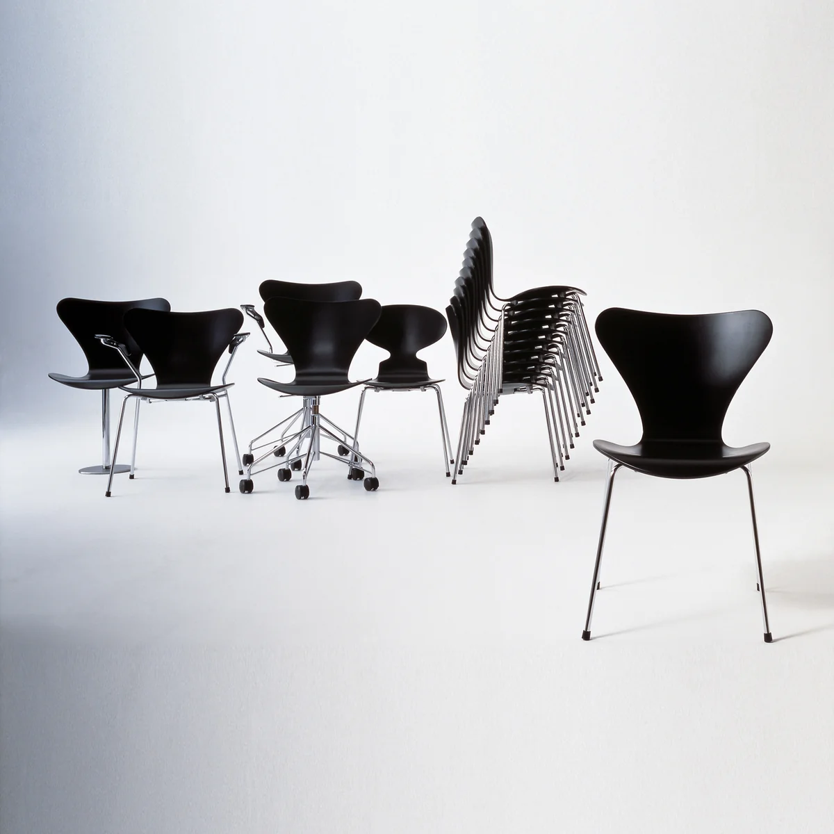 Dank seiner Sitzschale aus formgepresstem Furnier ist der Serie 7 Stuhl besonders leicht und zugleich überaus stabil. Gleichzeitig lässt sich der Arne Jacobsen Stuhl problemlos übereinander stapeln und ist so nicht nur im Wohnbereich ein gern gesehener Gast, auch als Konferenzstuhl, in Warteräumen oder Lehrsälen ist der Stuhl-Klassiker von Arne Jacobsen allgegenwärtig.