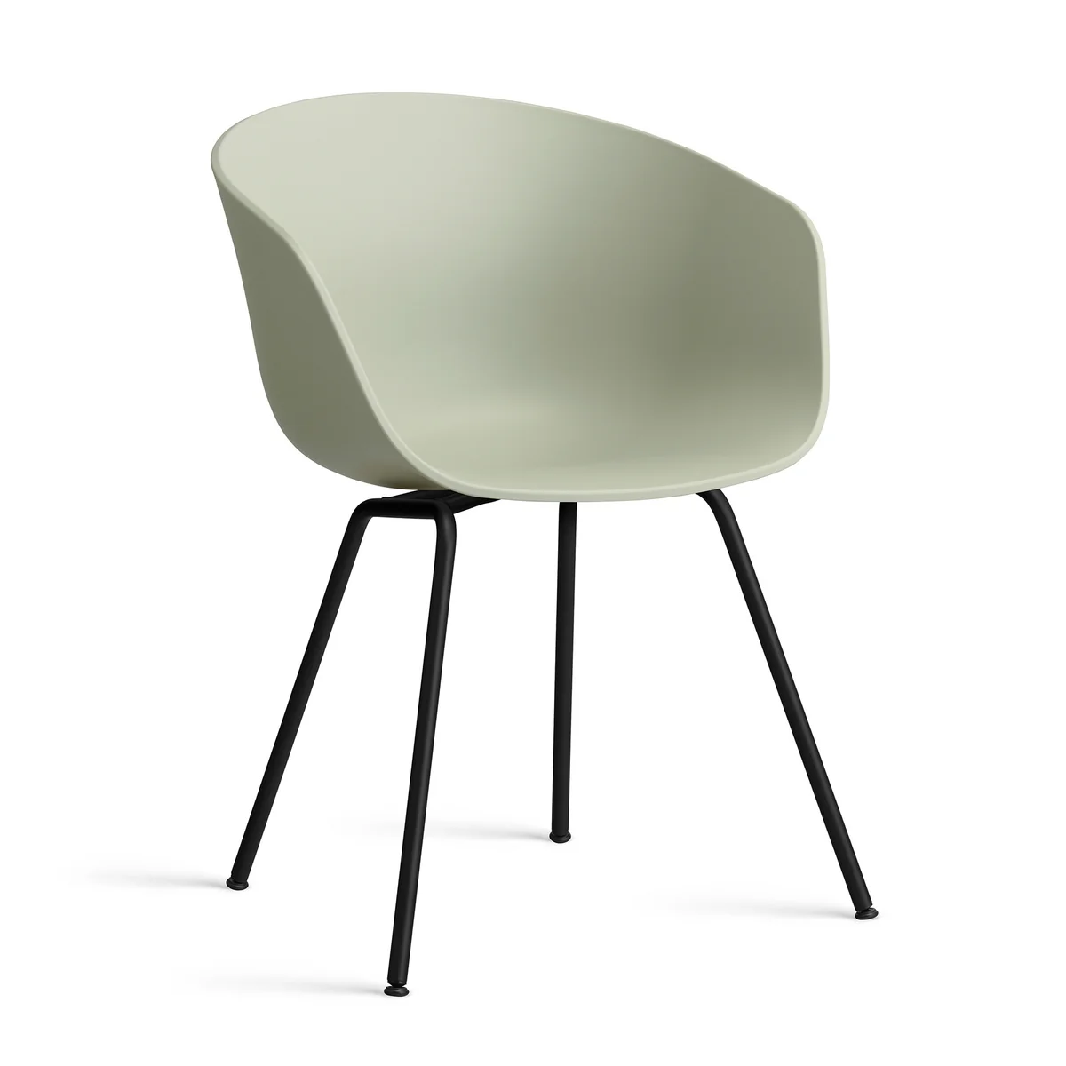 Der About A Chair AAC 26 von Hee Welling für HAY hat eine vierbeinige Basis aus poliertem oder pulverbeschichtetem Stahl, was dem Stuhl einen formaleren Ausdruck verleiht. Die Schale aus Polypropylen ist in verschiedenen Farben erhältlich.
