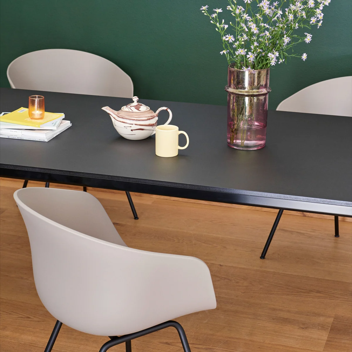 Der About A Chair AAC 26 von Hee Welling für HAY hat eine vierbeinige Basis aus poliertem oder pulverbeschichtetem Stahl, was dem Stuhl einen formaleren Ausdruck verleiht. Die Schale aus Polypropylen ist in verschiedenen Farben erhältlich.