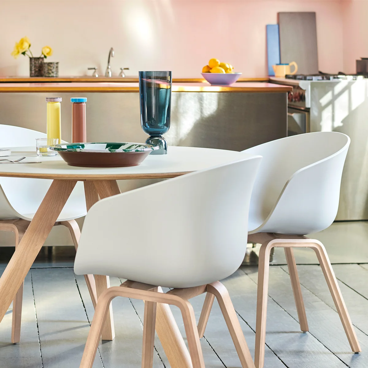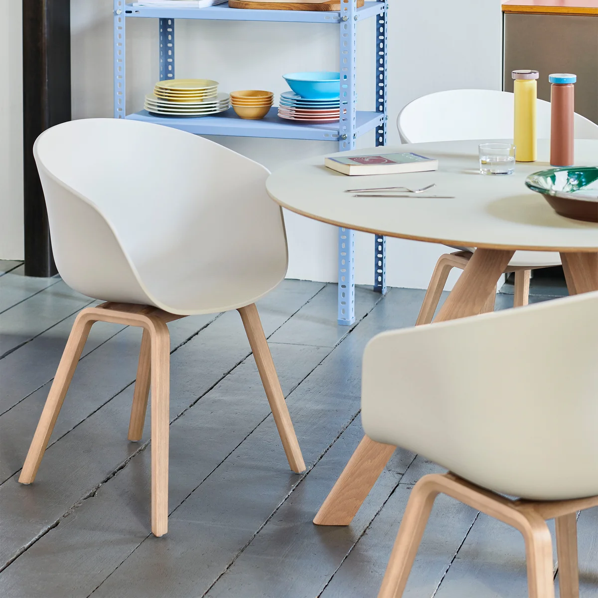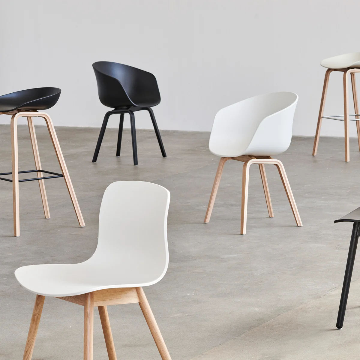 AAC - About A Chair von HAY ist eine Stuhl-Serie mit auffallender Einfachheit im Design. Designer Hee Welling hat mit der facettenreichen Kollektion ein neues Level in der Kombination von Form, Funktion, Komfort, Detail und Ästhetik erreicht. Als Variante ist der beliebte HAY Stuhl in einem farbigem Design erhältlich, bei dem sich Untergestell und Sitzschale farblich ergänzen.