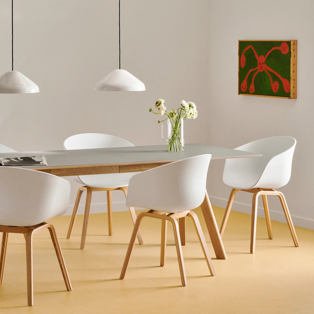 Nach den Vorstellungen von Designer Hee Welling sollten sich die About a Chair-Stühle ebenso im Restaurant oder in der Kantine zuhause fühlen, wie im Büro, am heimischen Esstisch oder am Konferenztisch. In diesem Zusammenhang wurde die Idee der Einfachheit zu einem Garanten für Multifunktionalität und Kombinierbarkeit.