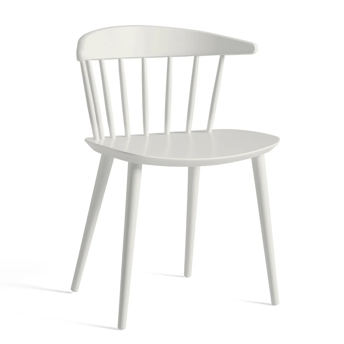 Die typischen Windsor-Stühle aus dem 18. Jahrhundert waren Vorbild für den J104 Chair: Die filigranen Stäbe der Rückenlehne und die traditionelle Fertigung aus Holz sind ein Merkmal der Windsor-Stühle, denen Jøergen Bækmark eine zeitlose Gestaltung verpasste. Der ursprünglich von FDB gefertigte J104 wirkt durch die einzigartige Struktur filigran und stabil zugleich. Sein reduziertes Design sorgt dafür, dass der Stuhl bis heute modern erscheint.
