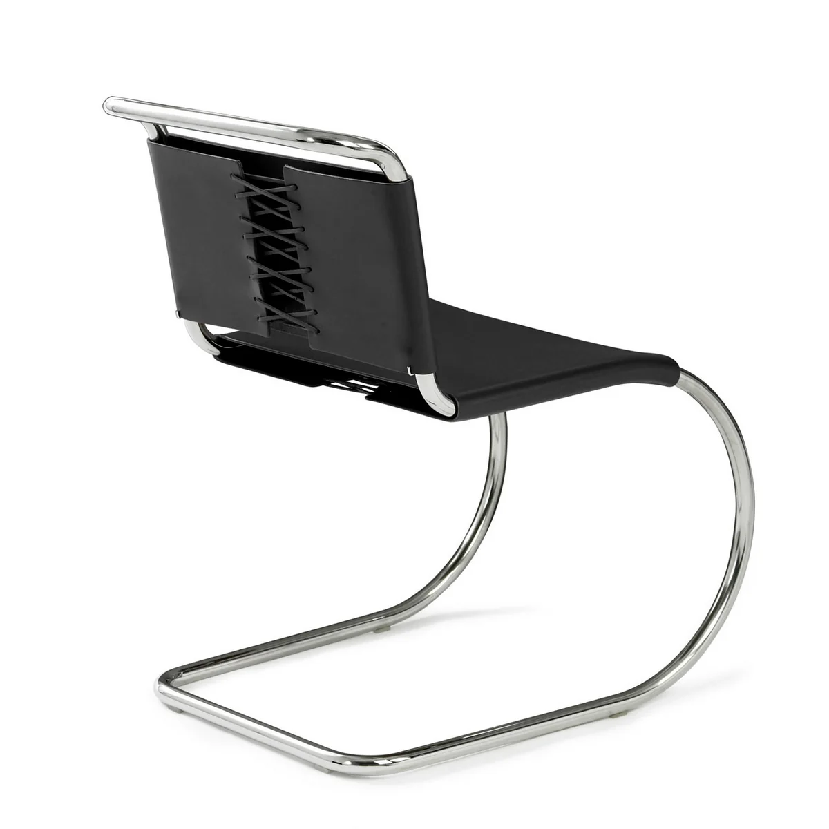 Der legendäre MR Beistellstuhl von Knoll repräsentiert die frühen Stahl-Designs von Ludwig Mies van der Rohe. Die Materialwahl wurde vom Bauhaus-Meister Marcel Breuer inspiriert, während die Formgebung ein modernes Derivat der Eisen-Schaukelstühle aus dem 19. Jahrhundert darstellt.