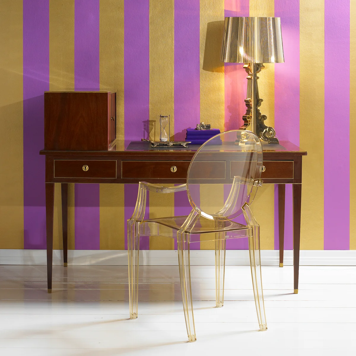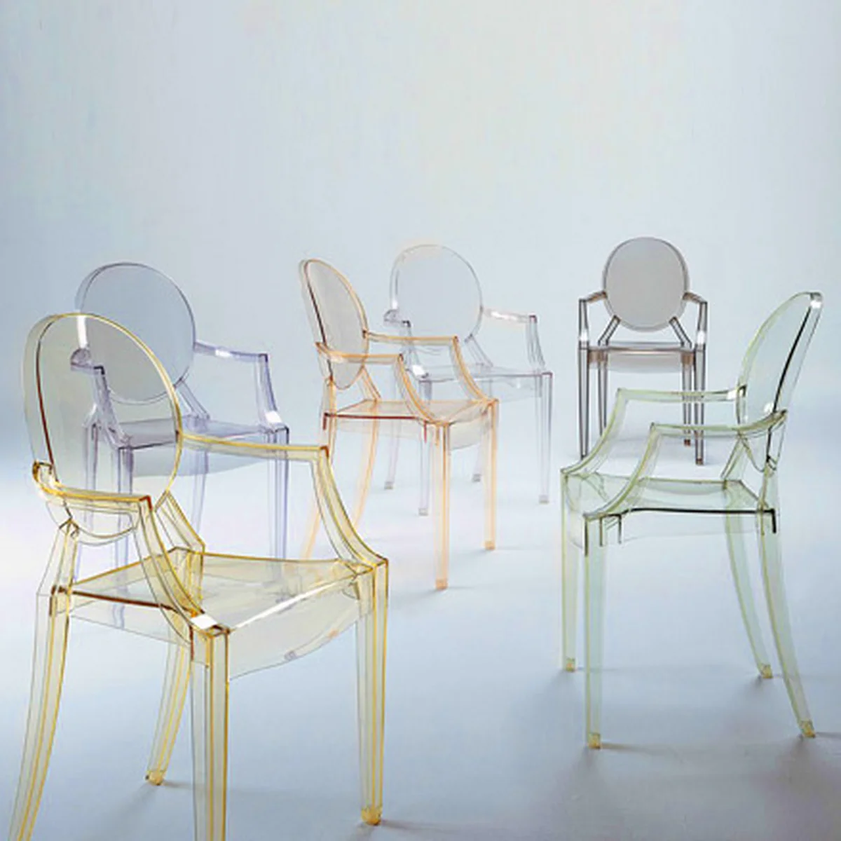 Der Louis Ghost Armlehnstuhl ist auch technologisch ausgesprochen innovativ, er wird im Spritzgussverfahren nahtlos in einem Stück hergestellt, eine sehr mutige Verwendung des Werkstoffs Polycarbonat. Trotz des zarten und transparenten Aussehens ist Louis Ghost äußerst stabil und haltbar, stoß- und kratzfest sowie beständig gegen Witterungseinflüsse. So kann der Kartell-Stuhl sowohl im Innen- und Außenbereich eingesetzt werden: Als dezenter Wohnzimmerstuhl für den Esstisch oder als ganz besonderer Gartenstuhl.
