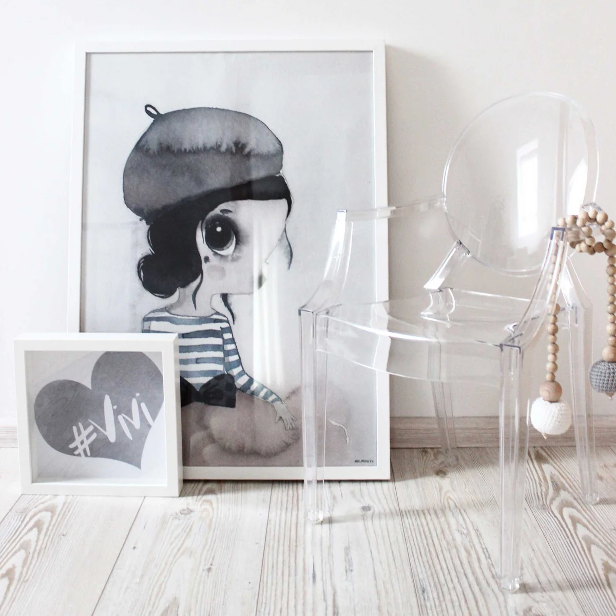 Zusätzlich zu den von Kartell angebotenen Farben kann der Louis Ghost Armlehnstuhl auf Wunsch mit verschiedenen Motiven auf der Rückenlehne angefertigt werden. Zur Auswahl stehen: Kindergesicht, chinesische Maske, Bärenkopf oder eine schwarze Maske - oder auf Wunsch auch ganz individuell mit eigenen Motiven. Für die Gestaltung mit eigenen Motiven ist eine Mindestbestellung von 10 Stühlen erforderlich.
