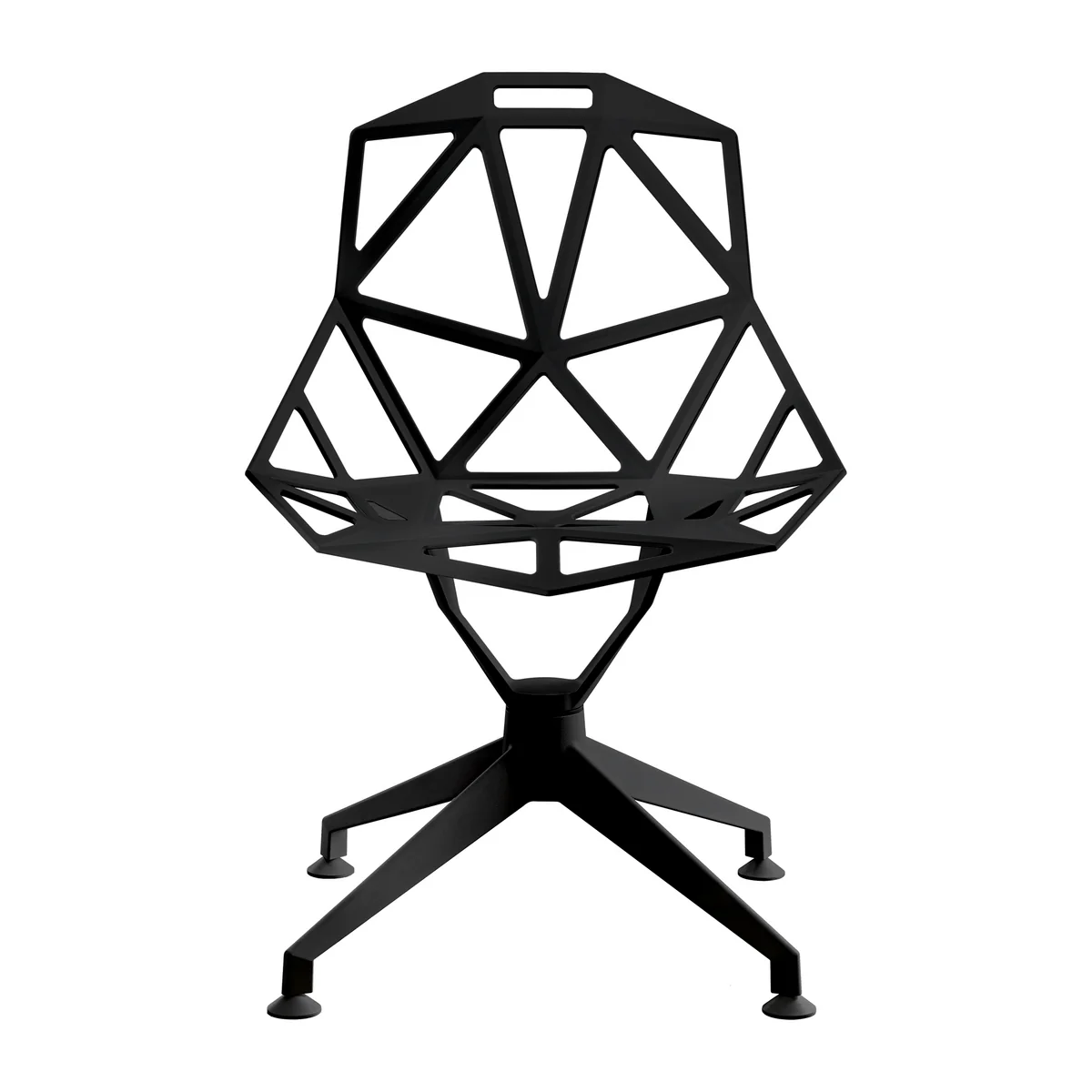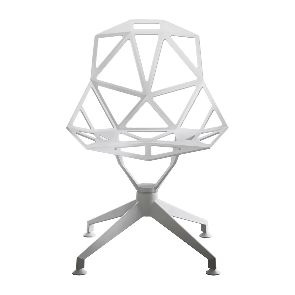 Der Chair One 4Star ist aber keinesfalls ein bloßes avantgardistisches Sitzmöbel. Der Stuhl ist ein Zusammenspiel von Material, Formgebung und industrieller Fertigung. Chair One 4Star ruht auf einem Vierfußkreuz und ist daher drehbar. Er kann sowohl im Innen- als auch im Außenbereich eingesetzt werden, denn er ist rostschutzbehandelt und feuerhemmend.