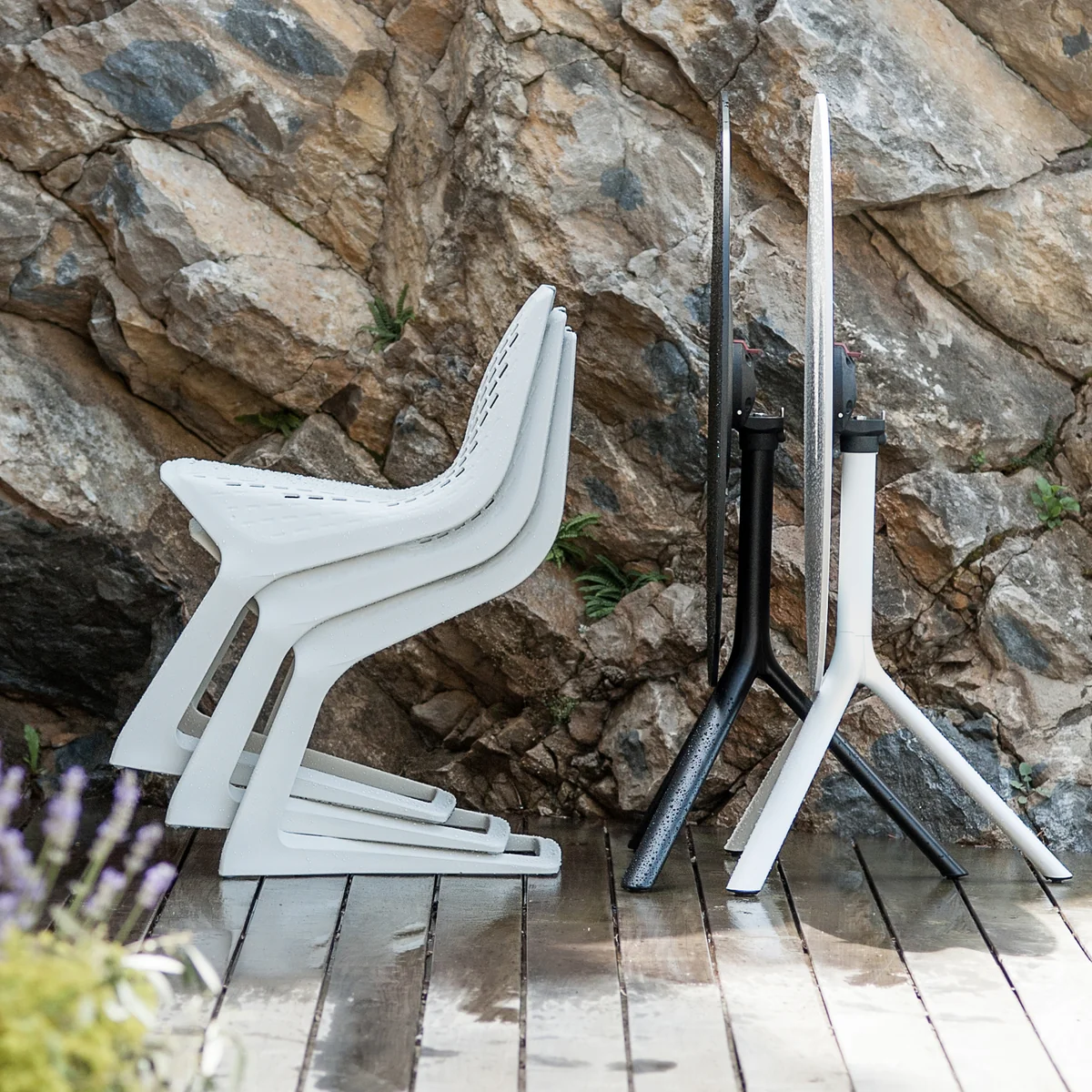 Die Eigenschaften des Materials ausreizend, gestaltete Konstantin Grcic einen eleganten Freischwinger, der durch einen besonders stabilen Rahmen, fließende Übergänge und einer Sitzfläche mit netzartigen Durchbrüchen besticht. Myto lässt sich im Wohn-, Objekt- und Officebereich einsetzen und ist sowohl für den Indoor- als auch Outdooreinsatz prädestiniert.