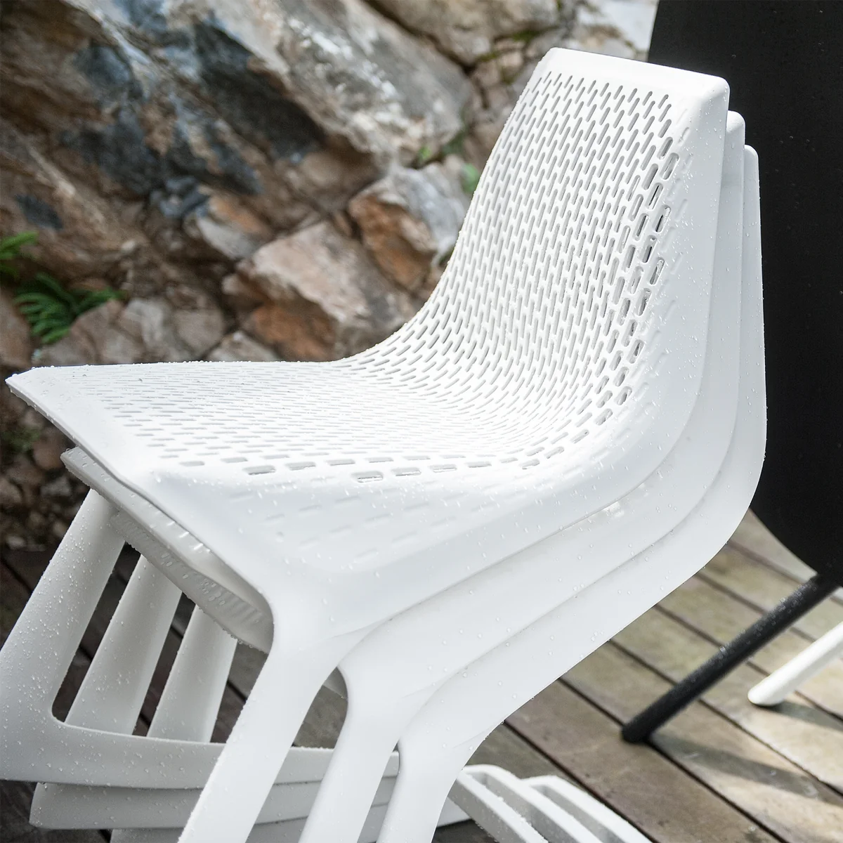 In einer bisher einmaligen Zusammenarbeit zwischen Möbelhersteller, Kunststoffproduzent und Designer haben sich Plank, BASF und Konstantin Grcic der gemeinsamen Herausforderung gestellt, einen stapelbaren Freischwinger-Stuhl aus Kunststoff zu entwickeln. Für alle Beteiligten war es ein wichtiger Schritt, diese Ikone der Designgeschichte neu zu interpretieren und in nur etwas mehr als einem Jahr zu realisieren. Der fließfähige Kunststoff Ultradur® High Speed ermöglichte die Konzeption des Stuhls als Monoblock Spritzguss in dessen tragender Rahmenkonstruktion die netzartige Sitz- und Rückenfläche MYTO das für Freischwinger typische Sitzgefühl verleiht.
