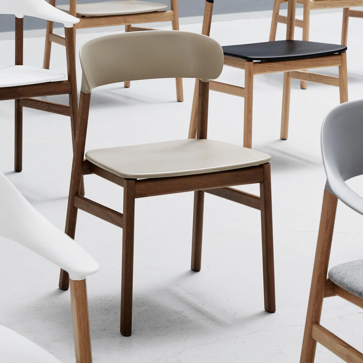 Mit aufeinander abgestimmten Materialien, einer gekonnten Mischung aus elegantem und natürlichem Ausdruck sowie einer hochwertigen Verarbeitung, fügt sich der Herit Stuhl in jedes Ambiente ein und macht im Büro oder am Esstisch eine hervorragende Figur. Auch einzeln für sich stehend im Flur oder Schlafzimmer platziert, setzt das Sitzmöbelstück stilvolle Akzente und bringt zugleich ein Stück dänische Designgeschichte in die eigenen vier Wände.