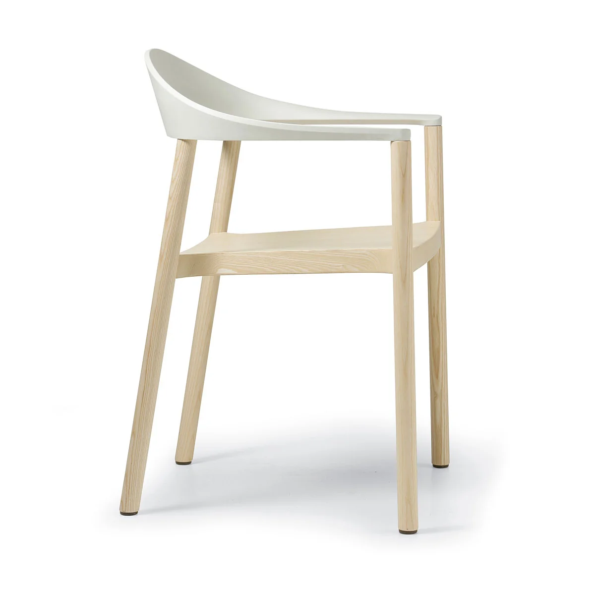 Dem Armlehnenstuhl Monza liegt eine reduzierte Holzkonstruktion zugrunde, die sich formal an die Typologie skandinavischer Holzstühle anlehnt. Sein Charakter wird durch den Kunststoffaufsatz definiert, der einerseits für die Stabilität der Konstruktion sorgt und darüber hinaus dem Stuhl Komfort sowie Farbigkeit verleiht.