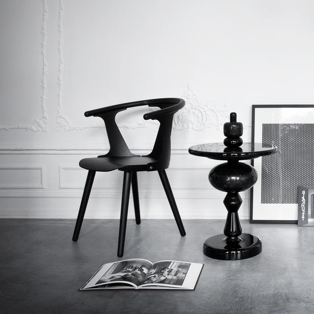 Die traditionelle skandinavische Holzverarbeitung und die innovativen detailverliebten Ideen des Designers Sami Kallio kommen beim Stuhl In Between zusammen und verwandeln den Stuhl in ein diffuses Designobjekt welches mit allen Sinnen spielt.
