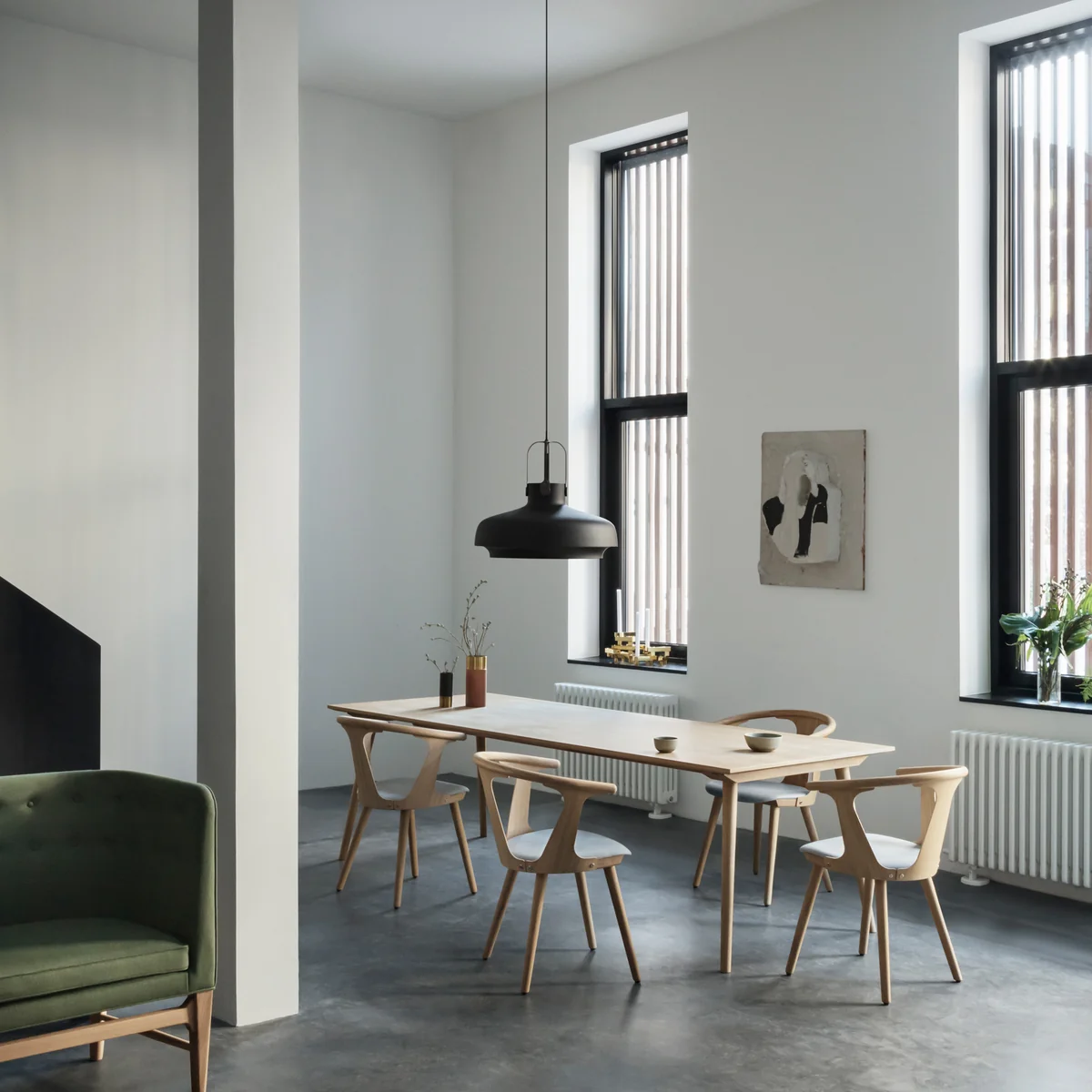 Das Wechselspiel zwischen positivem und negativem Raum steht im Mittelpunkt von In Between, dem Stuhl von Sami Kallio für &Tradition. Die Rücken- und Seitenteile des Stuhls sorgen für eine konkrete Form und gleichzeitig entstehen neue Formen in den offenen Räumen dazwischen. So wird der Stuhl zu einer bequemen Sitzgelegenheit und aufgrund seiner Gestaltung zum Hingucker in jedem Raum.
