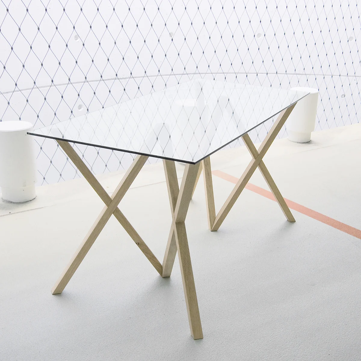 Für jede Art von Tischplatten geeignet, überzeugt der Mika Tischbock von Gesa Hansen für The Hansen durch seine handwerkliche Fertigung aus massiver Eiche. Ähnlich einem Dachstuhl ist das Gewicht optimal verteilt, so dass Mika auch schweren Tischplatten bis zu 80 kg problemlos einen festen Stand verschafft. Ein weiteres Plus der innovativen Konstruktion von Mika: An den Kopfseiten ist genug Platz um komfortabel sitzen zu können.