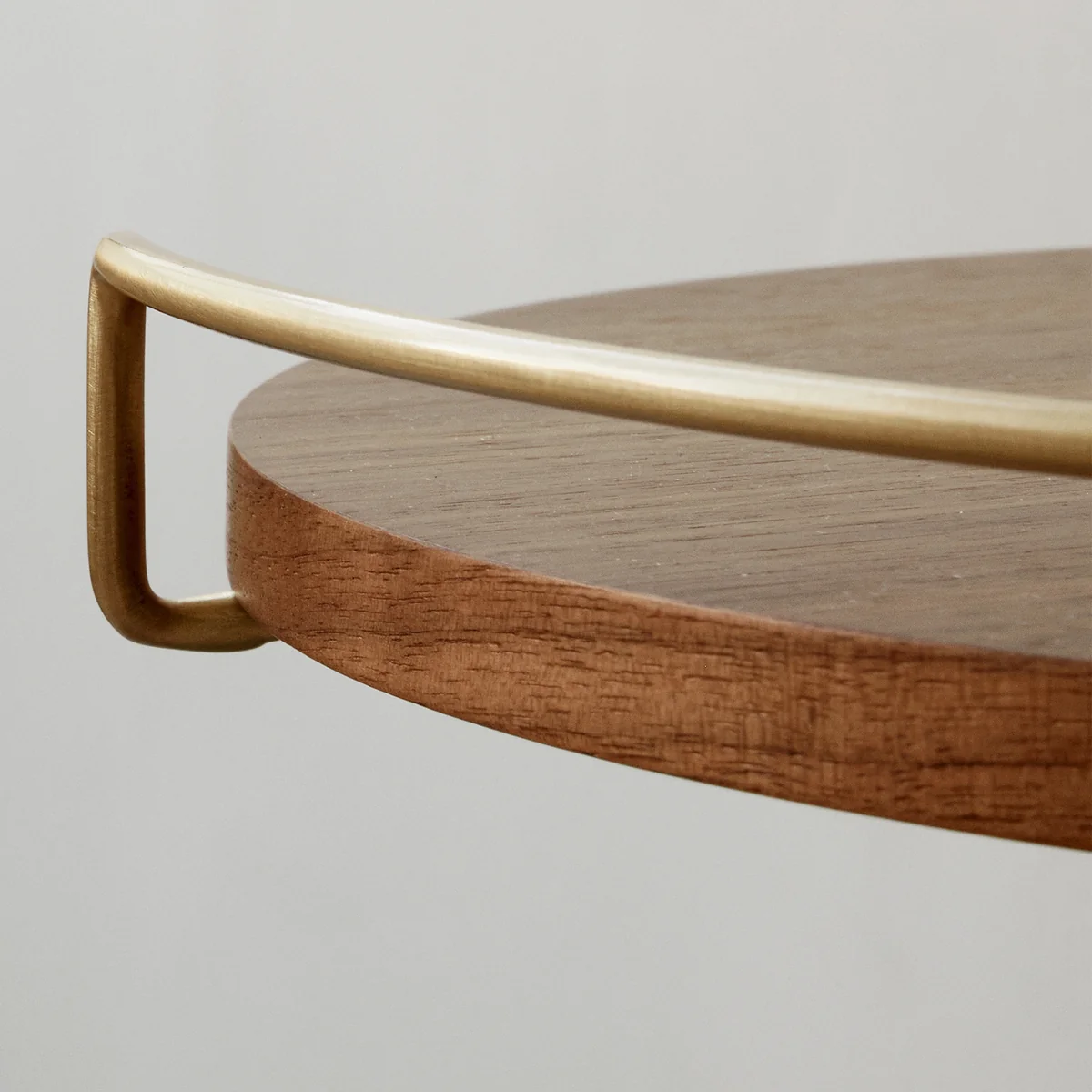 Der wiederaufgelegte Umanoff Beistelltisch von Audo ist heute noch genauso aktuell wie damals, als er in den 1950er Jahren von Arthur Umanoff entworfen wurde. Der Design-Beistelltisch bringt Walnussholz und Messing auf seiner abgerundeten Platte und dem vom Stativ inspirierten Rahmen in ein Gleichgewicht und schafft so einen Tisch, der Konventionen herausfordert.