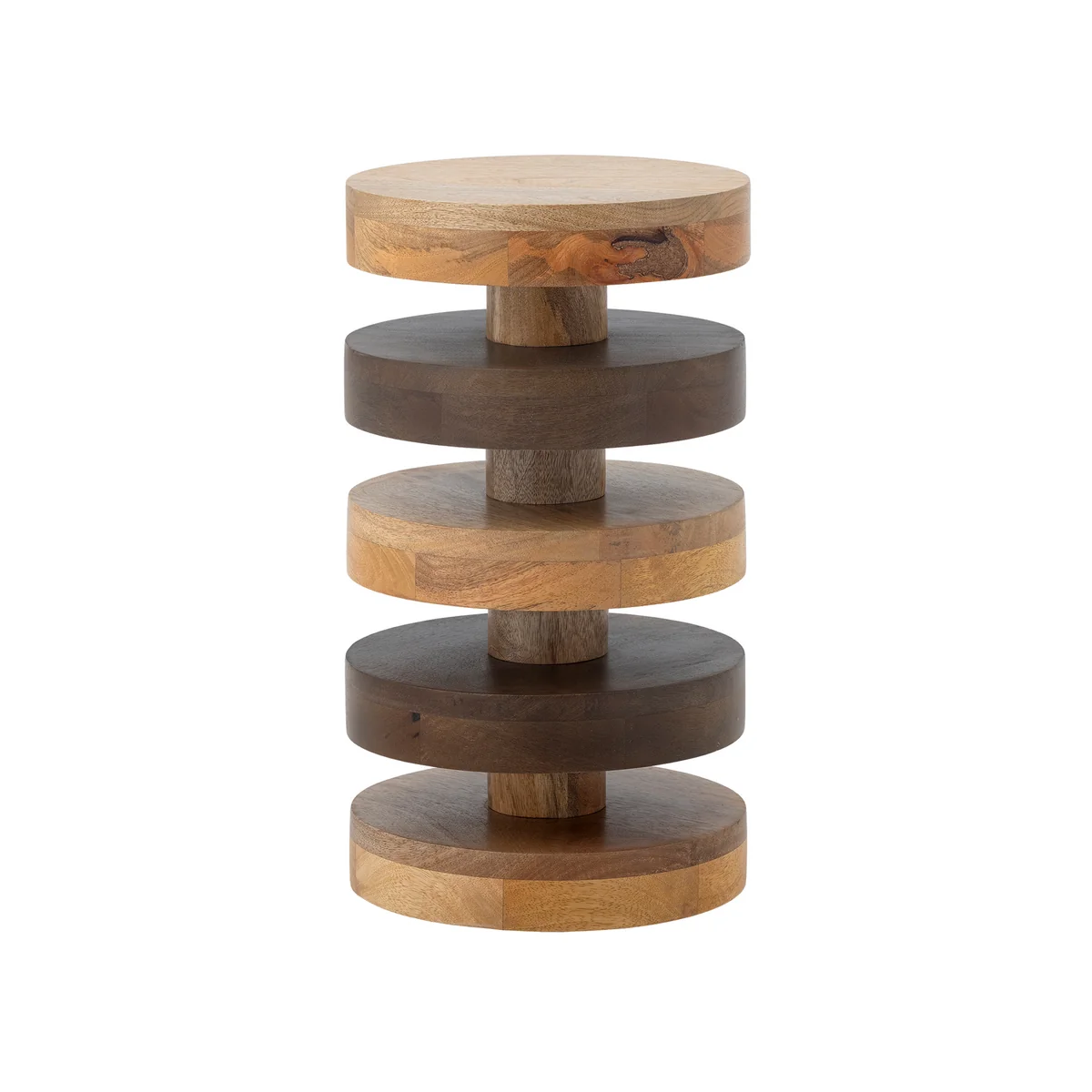 Der Franka Beistelltisch von Bloomingville besticht durch seine besondere Formgebung und die kontrastreiche Maserung des FSC 100%®-zertifizierten Mangoholzes. Die Kombination aus hellen und dunklen Holztönen verleiht dem Tisch eine lebendige Ausstrahlung, die sowohl funktional als auch dekorativ überzeugt.