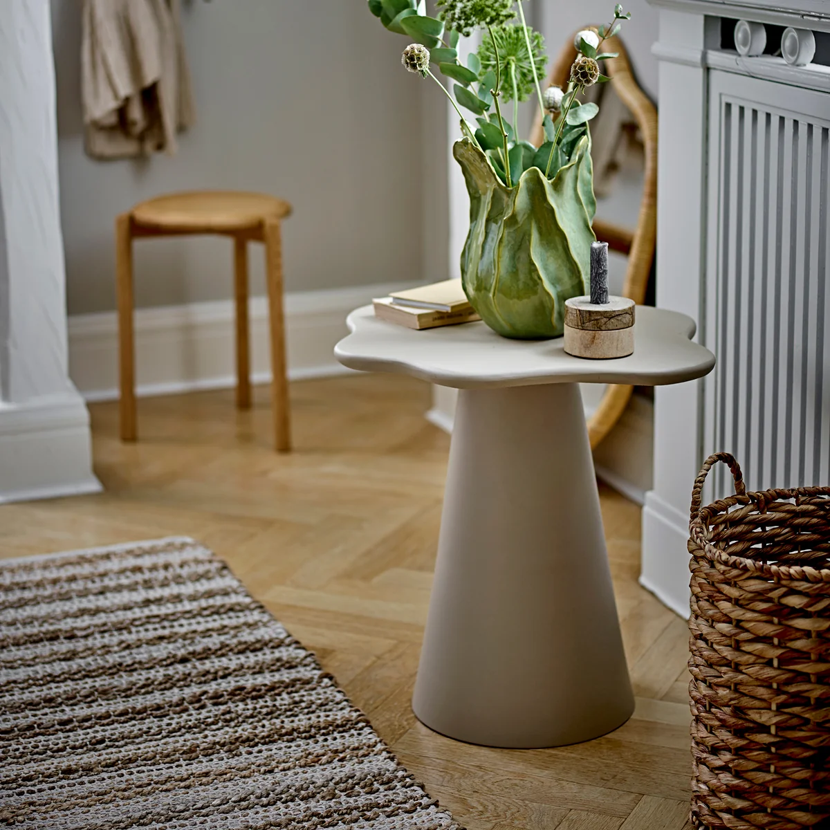 Der Soller Beistelltisch von Bloomingville, gefertigt aus hochwertigem Aluminium, ist mit einem eleganten beigen Lack überzogen, der einen subtilen Kontrast zur robusten Beschaffenheit des Metalls schafft. Mit seiner organisch geschwungenen Form bringt der Tisch ein naturnahes und charmantes Element in jeden Wohnraum und trägt zur Schaffung einer behaglichen und einladenden Atmosphäre bei. Ob als Ablagefläche neben dem Sofa oder als dekoratives Highlight im Flur, der Soller Beistelltisch überzeugt durch seine vielseitige Einsetzbarkeit und stilvolle Ästhetik.