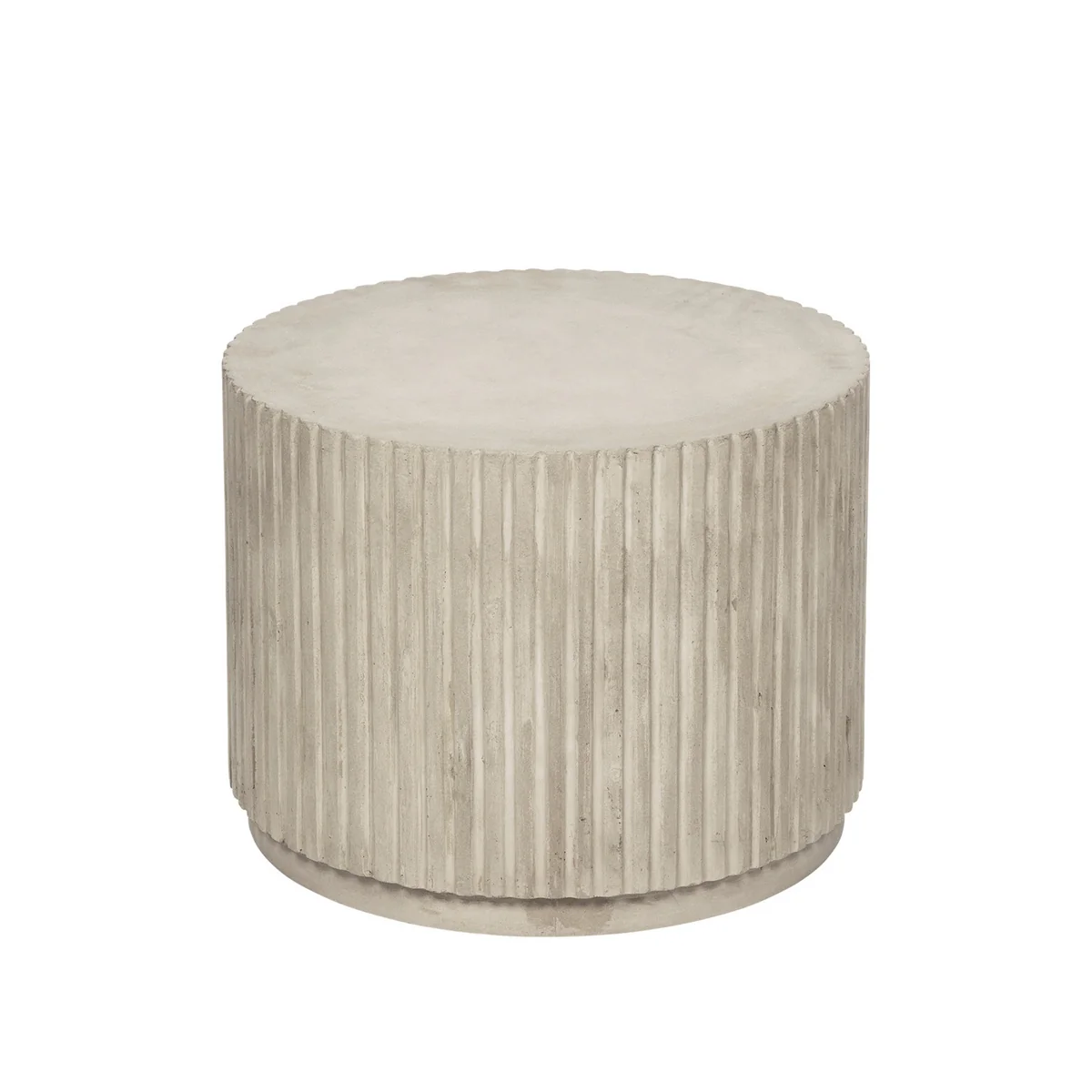 Der Rillo Beistelltisch von Broste Copenhagen ist aufgrund seines Materials ein echter Blickfang im Ambiente. Der Tisch ist aus Faserzement gefertigt und erhält durch das Material eine industrielle Note. Seine zylindrische Form wird durch Rillen am äußeren Rand ergänzt, sodass eine interessante Struktur entsteht.
