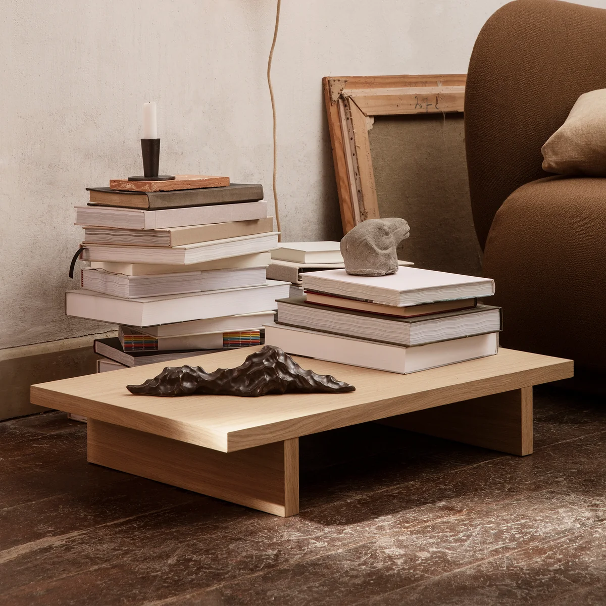 Der Kona Beistelltisch des dänischen Herstellers Ferm Living ist von der japanischen Kunst des Lebens inspiriert. Der tief gelegene Tisch begeistert mit seinem schlichten, gleichzeitig überaus eleganten Design. Je nach Belieben kann der Tisch aus lackiertem Eichenholzfurnier mit MDP-Kern als außergewöhnlicher Couchtisch genutzt werden. Ebenso kann der Kona Beistelltisch ganz flexibel nach eigenem Wunsch eingesetzt werden, so unter anderem als Dekorationselement für das Aufstellen von Bücher, Pflanzen, Vasen und co.