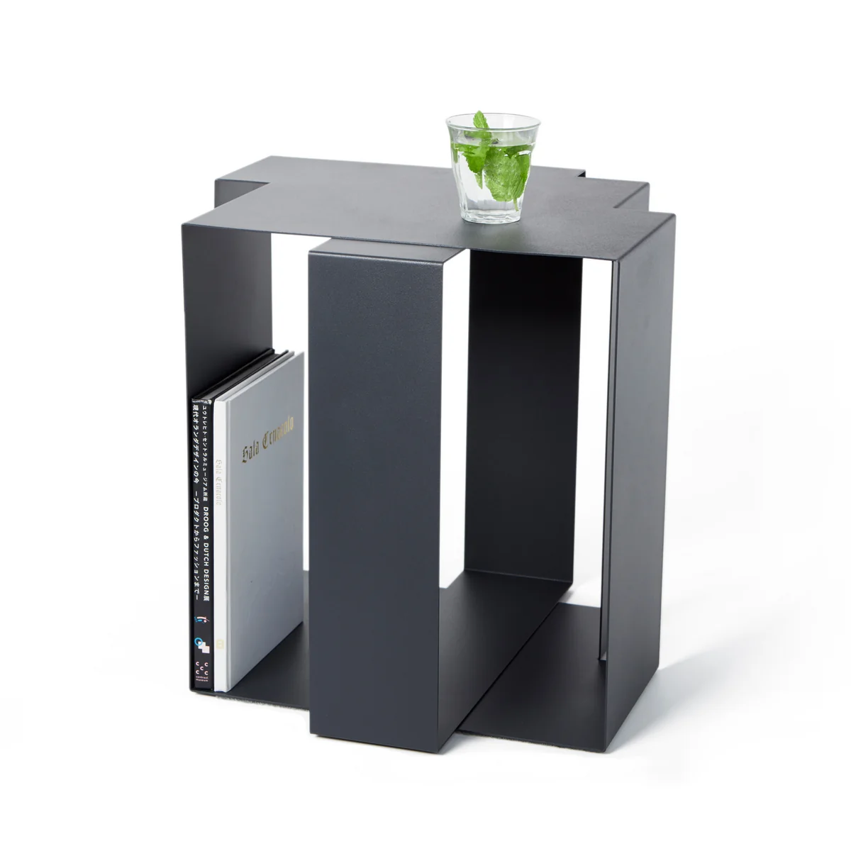 Hergestellt wird der Beistelltisch aus pulverbeschichtetem Stahl und ist in verschiedenen Farben erhältlich. Horizontal oder vertikal aufgestellt ist der Shifted Square dekorativ und praktisch neben dem Sofa im Wohnzimmer oder neben dem Bett im Schlafzimmer. Seine luftige Konstruktion ermöglicht es zudem unter der Ablagefläche Zeitschriften, Magazine, Decken und vieles mehr zu verstauen.