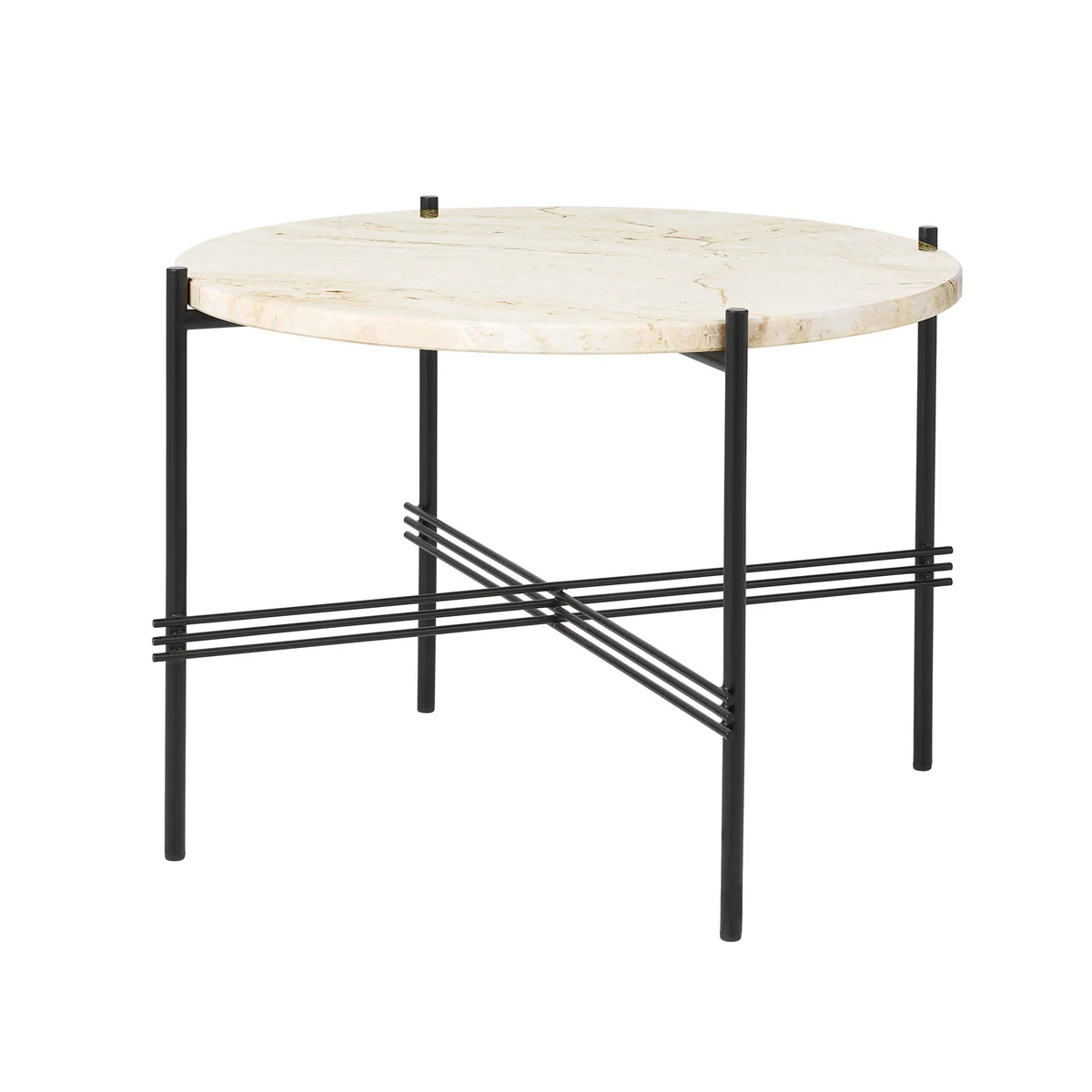 Der Travertine Couchtisch von Gubi ist ein vielseitiger Couchtisch, der seine Energie aus stilvollen Kontrasten zieht: Schlanke Metallrahmen treffen auf die stabile Platte aus wunderschönem Travertinstein. Entworfen wurde er vom Designer-Duo GamFratesi für das Restaurant "The Standard" in Kopenhagen. Mit seinem skulpturalen Aussehen und dem edlen Material passt er perfekt ins Ambiente und eignet sich am Sofa, als Kaffeetisch, oder in der Hotellobby zum Präsentieren von Magazinen.