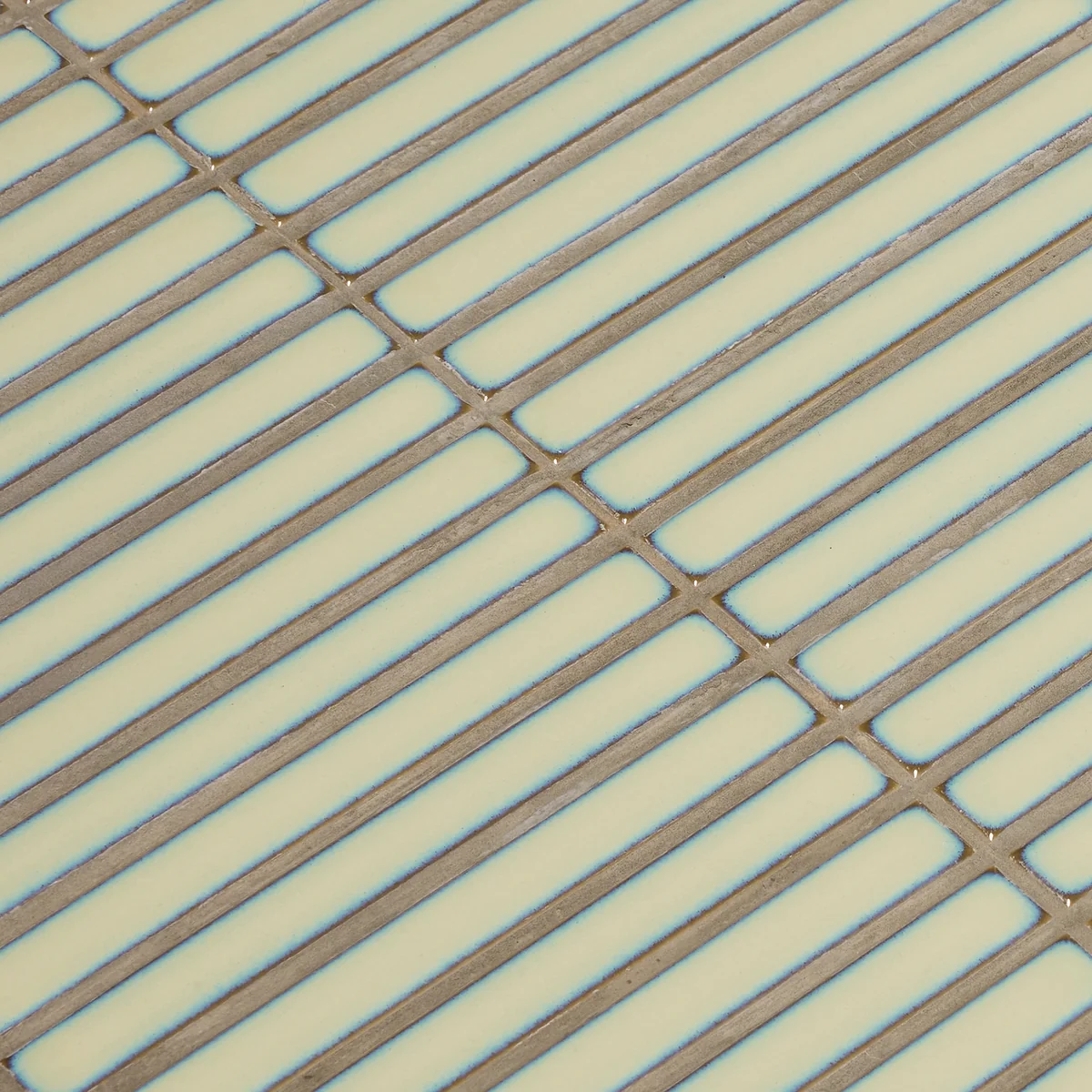 - Auffällige Tischplatte in mintfarbener Fliesenoptik