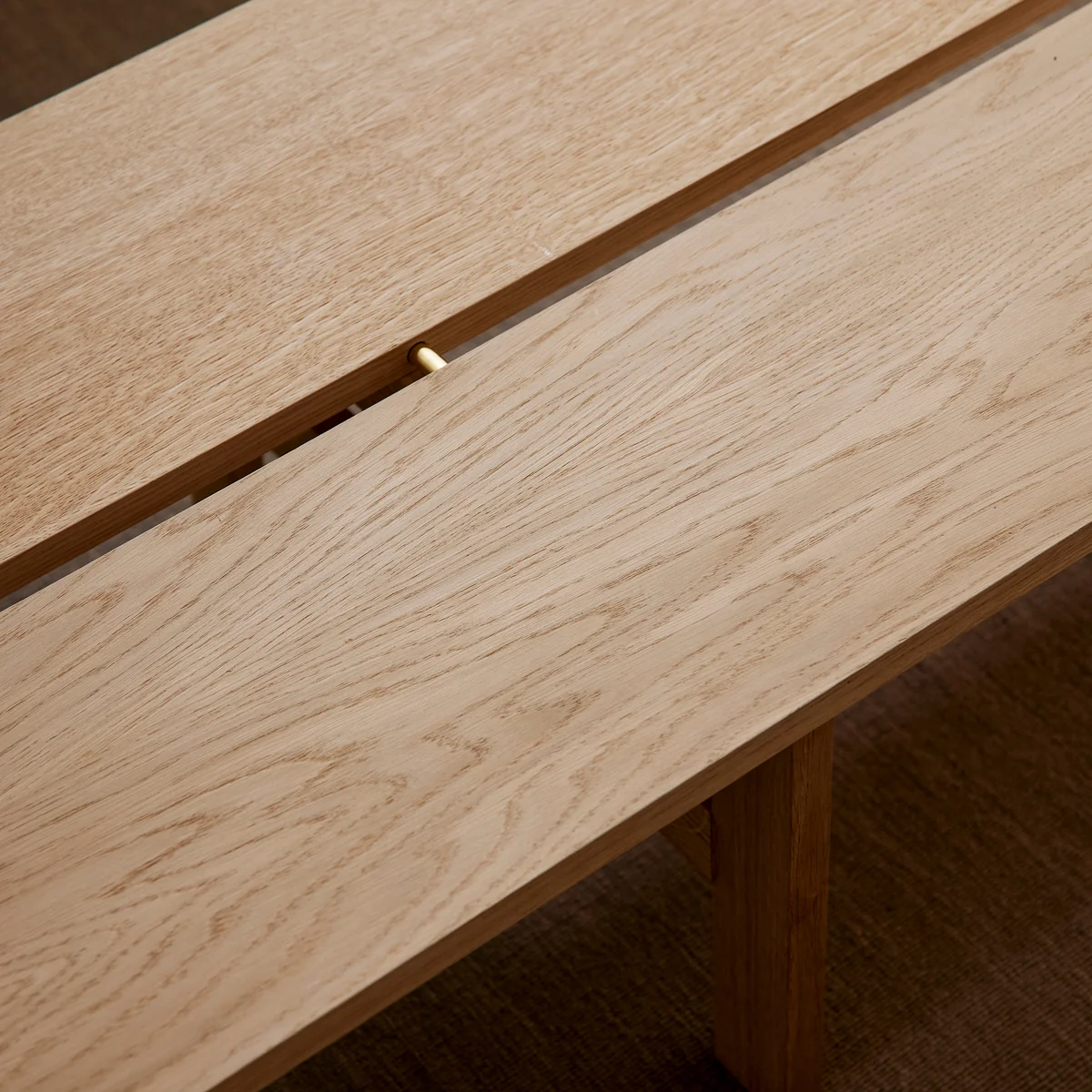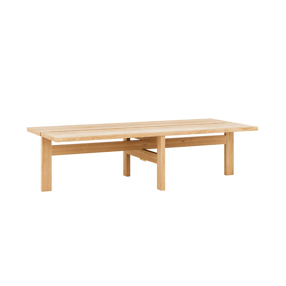 Der Moebe Coffee Table überzeugt durch sein minimalistisches Design und die durchdachte Konstruktion. Mit einer niedrigen Höhe von 30 cm und einem kreuzförmigen Beingestell bietet er ein offenes Raumgefühl, da die Tischplatte frei über den Ecken schwebt. Dezente Messingdetails betonen die hochwertige Verarbeitung, während die flache Verpackung einen einfachen Aufbau ermöglicht.
