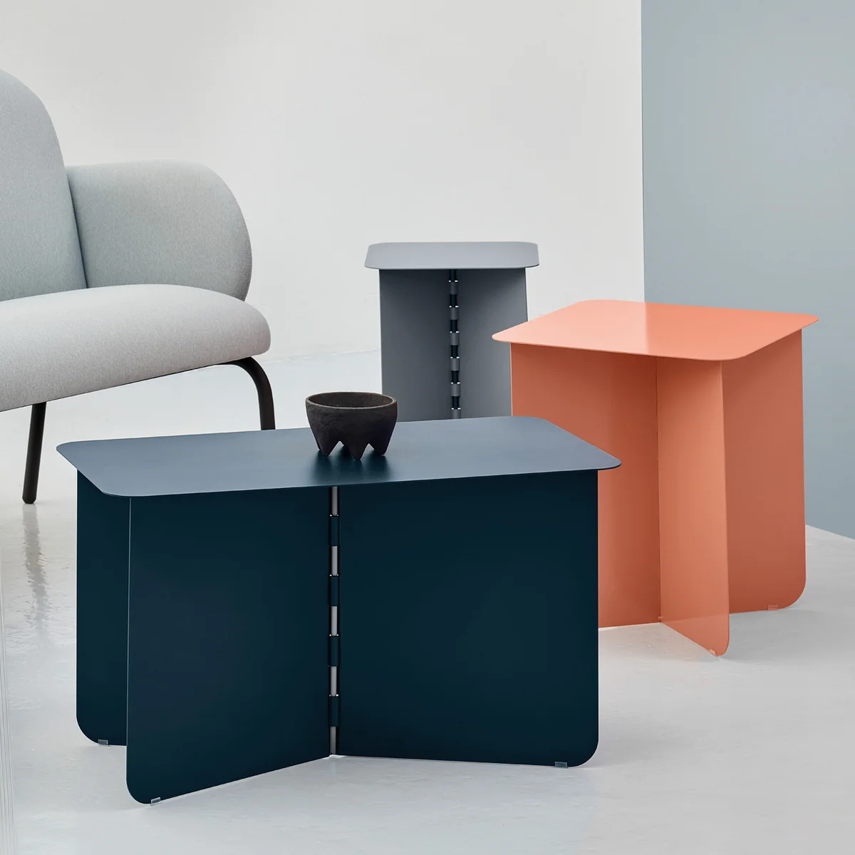 Der Hinge Beistelltisch erhielt seinen Namen vom Design: Hinge bedeutet Scharnier. Das ist der Grundgedanke des Beistelltischs: Die Verbindung zweier Metallplatten. Der Designer Lex Pott verbindet das industrielle Design mit dem stylischen Anspruch, einen Beistelltisch für jedes Ambiente zu schaffen. Ob als Kaffeetisch im Wohnzimmer, als Beistelltisch im Büro, oder als Nachttisch: Der Hinge Beistelltisch setzt Akzente.