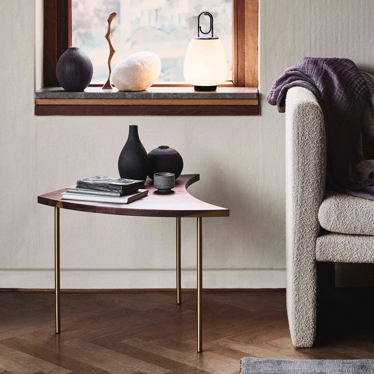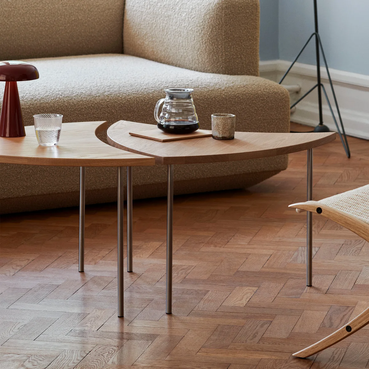 Der schlanke und formschöne Pinwheel HM7 Beistelltisch von &Tradition von Hvidt & Mølgaard aus dem Jahr 1953 ist ein vielseitig verwendbares Möbelstück. Entworfen, um sich anpassen zu können, verfügt der praktische Tisch über eine geschwungene Form, die es ermöglicht mehrere Pinwheel Tisch zusammenzustellen. So entstehen beliebig große Tische in verschiedenen Formen vor dem Sofa oder neben dem Sessel im Wohnbereich.