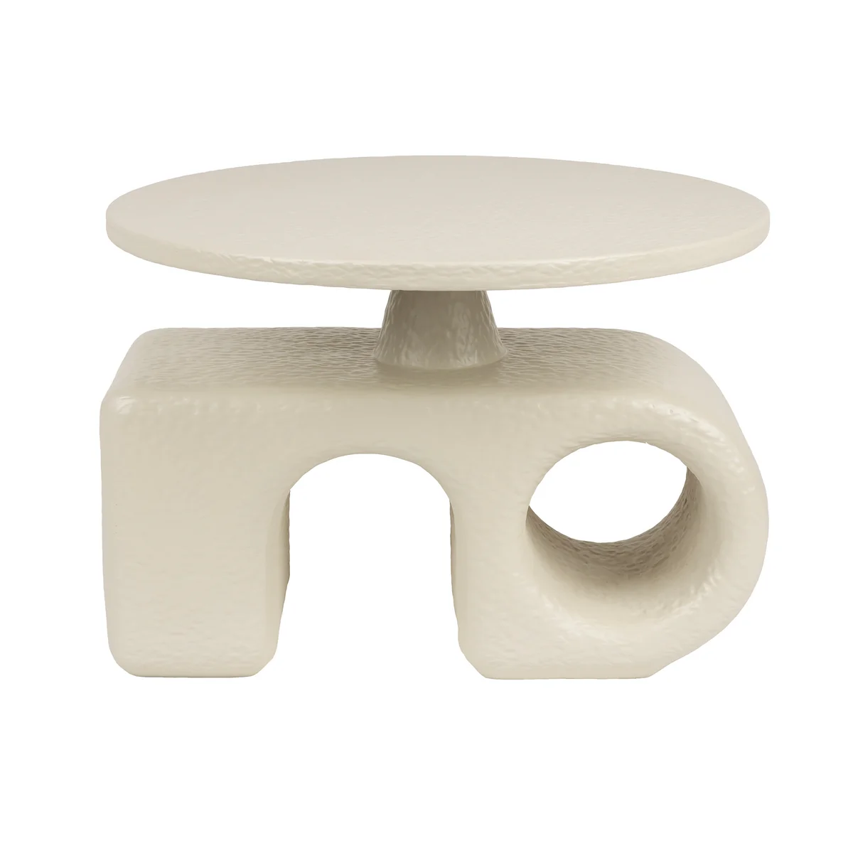 Beistelltisch mit runder Tischplatte und skulpturalem Untergestell