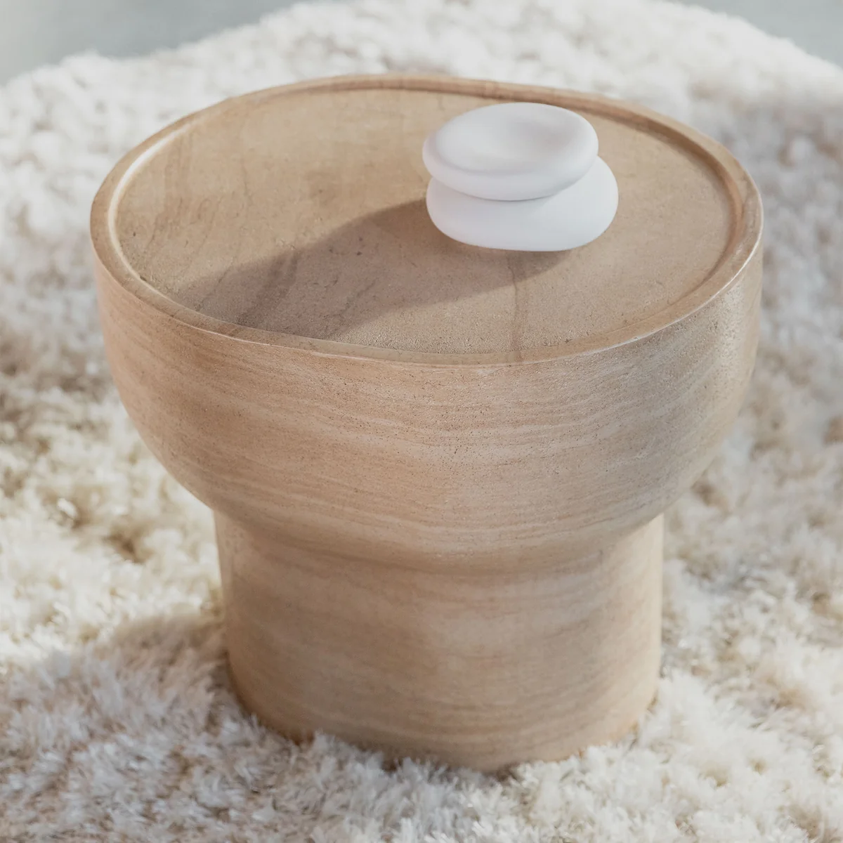 Noble Beistelltisch: Skulpturaler Look in Travertin-Optik