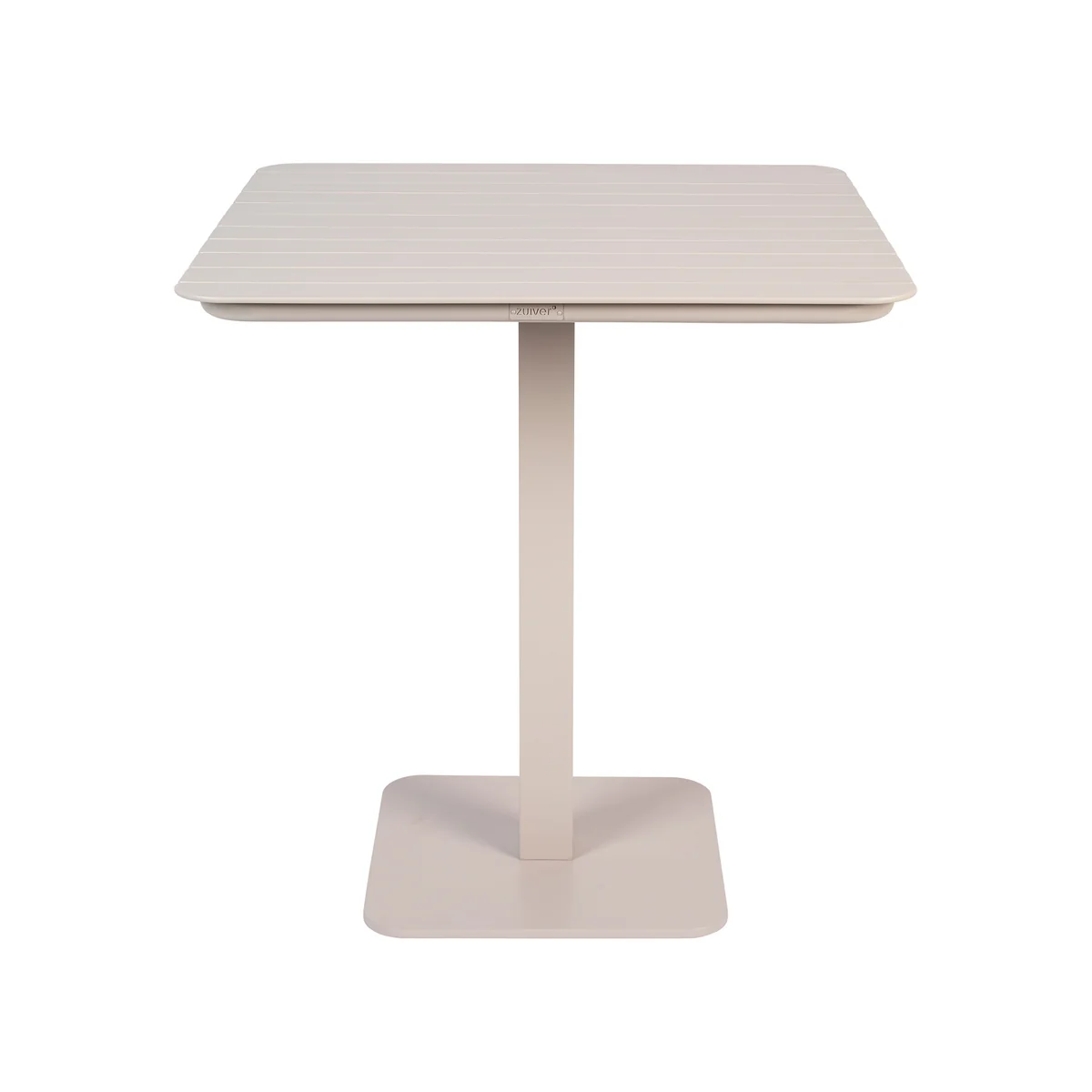 Der Vondel Bistrotisch von Zuiver bringt minimalistisches Design und robuste Outdoor-Funktionalität in perfekten Einklang. Mit seinem kompakten Format von 71 x 71 cm ist dieser Tisch wie geschaffen für Balkon, Terrasse oder kleinere Sitzgruppen im Garten. Der pulverbeschichtete Aluminiumrahmen verleiht ihm nicht nur eine moderne, matte Optik, sondern macht ihn zugleich wetterfest, langlebig und pflegeleicht – ideal für den ganzjährigen Einsatz im Freien.