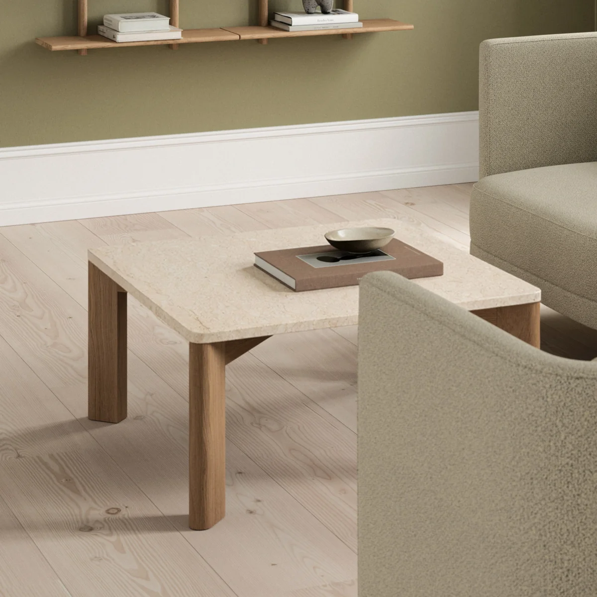 Der Evoke Kaffeetisch von Andersen Furniture, entworfen vom Designstudio Says Who, vereint klassische Formensprache mit moderner Ästhetik. Die Kombination aus edler Marmorplatte und massivem Eichenrahmen schafft ein harmonisches Gleichgewicht zwischen visueller Leichtigkeit und stabiler Konstruktion.