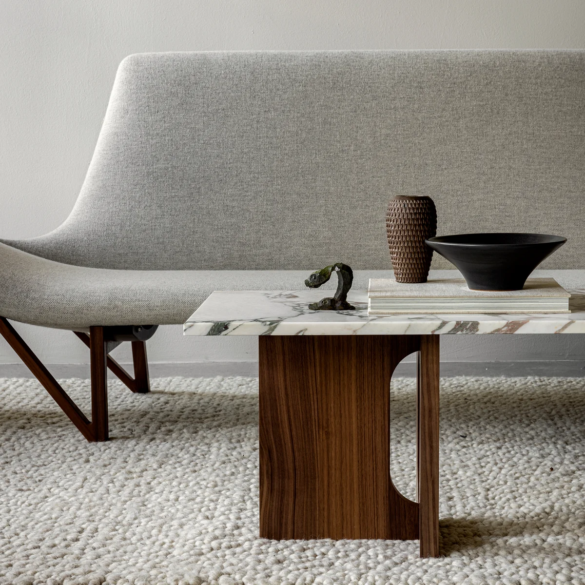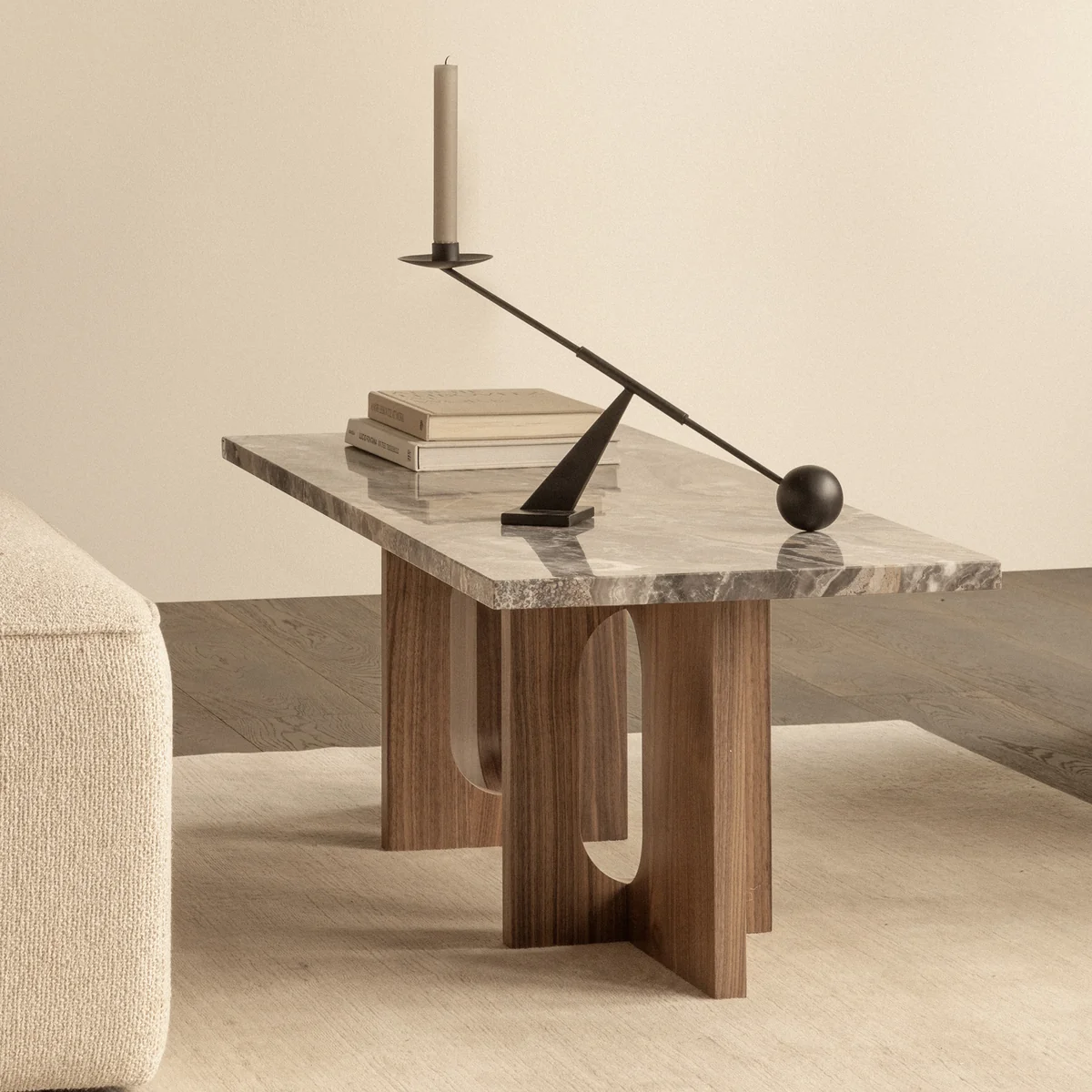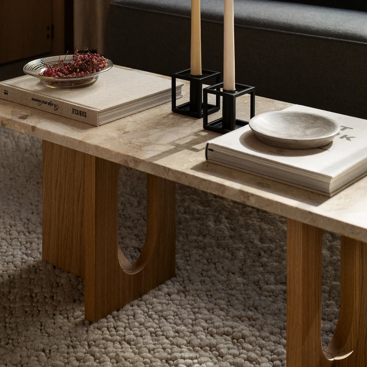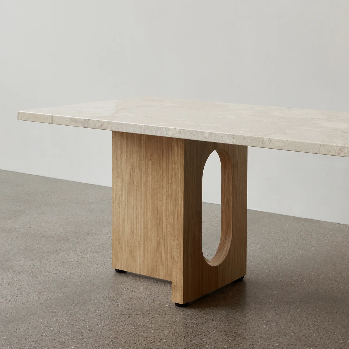 Ursprünglich von der norwegischen Architektin und Designerin Danielle Siggerud als moderner und vielseitiger Tisch für das ehemalige Showroom-Café von Audo entwickelt, zeichnet sich der Androgyne Couchtisch durch einfache Silhouetten und raffinierte Materialien aus.